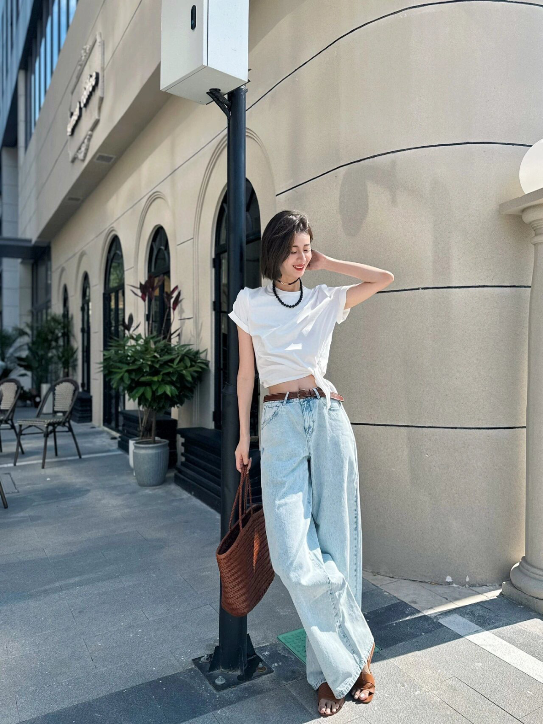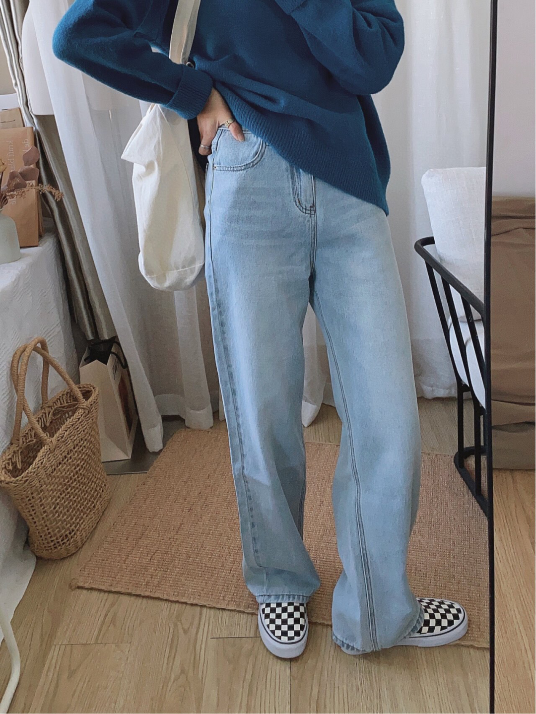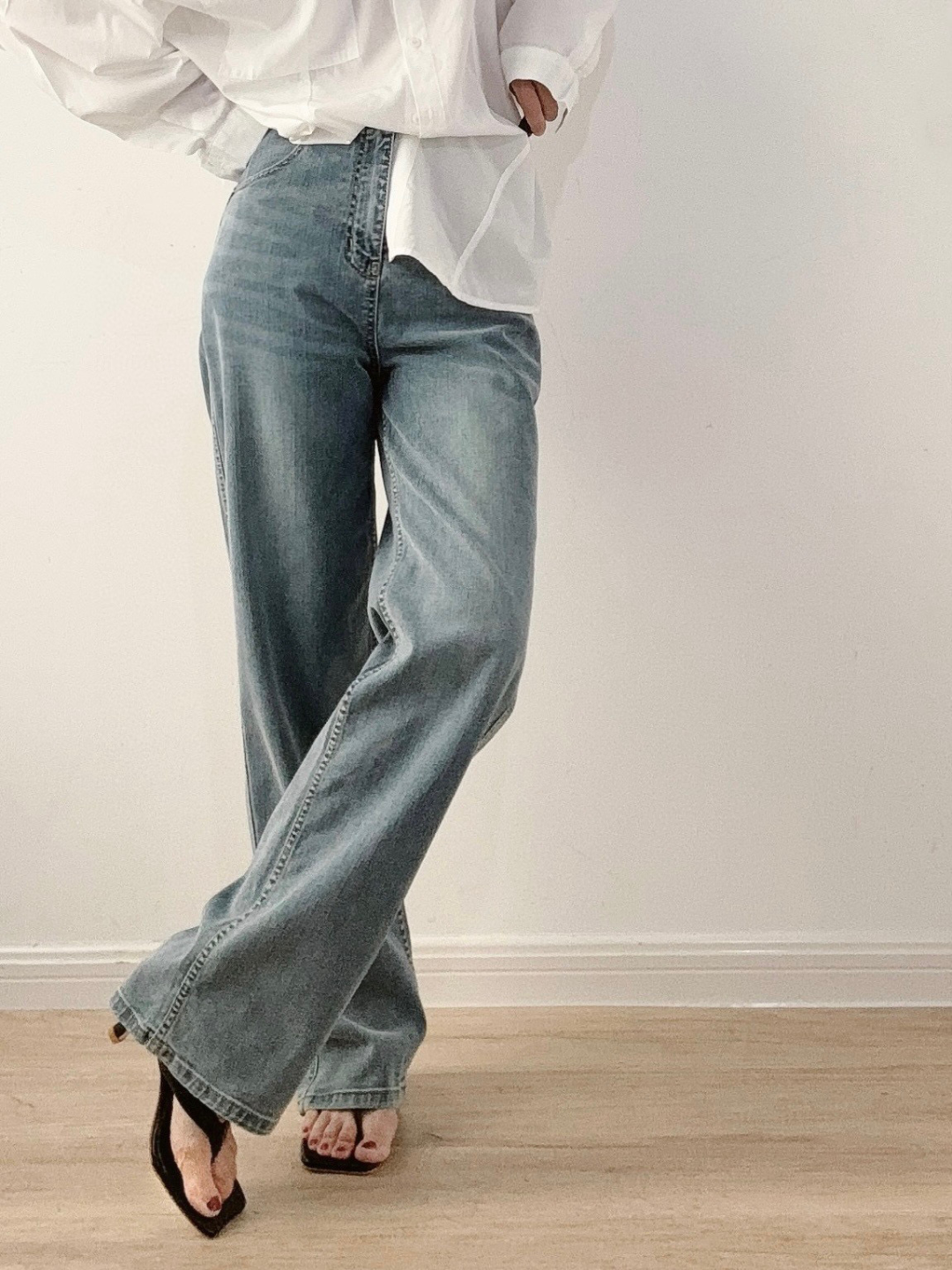 ELCHO工厂最新出品牛仔阔腿裤?这个版型和定制颜色搭配在一起真的巨实用!巨洋气!全部是侧缝前移过的加长裤型✅视觉更显腿长,四季款厚度超柔牛仔走起路来也更飒气