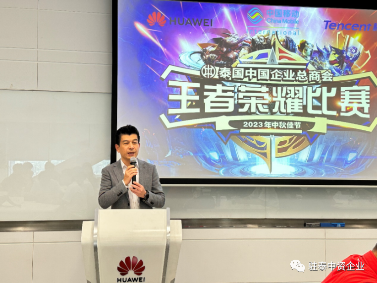 华为泰国营商董事兼公共关系部长徐聘在致辞中说道感谢总商会高科技分会的成员对华为的信任,在阴历16这样团圆美好的日子里,大家共度良宵佳节。希望今日各位赛出水平,赛出友谊,赛出团队合作。