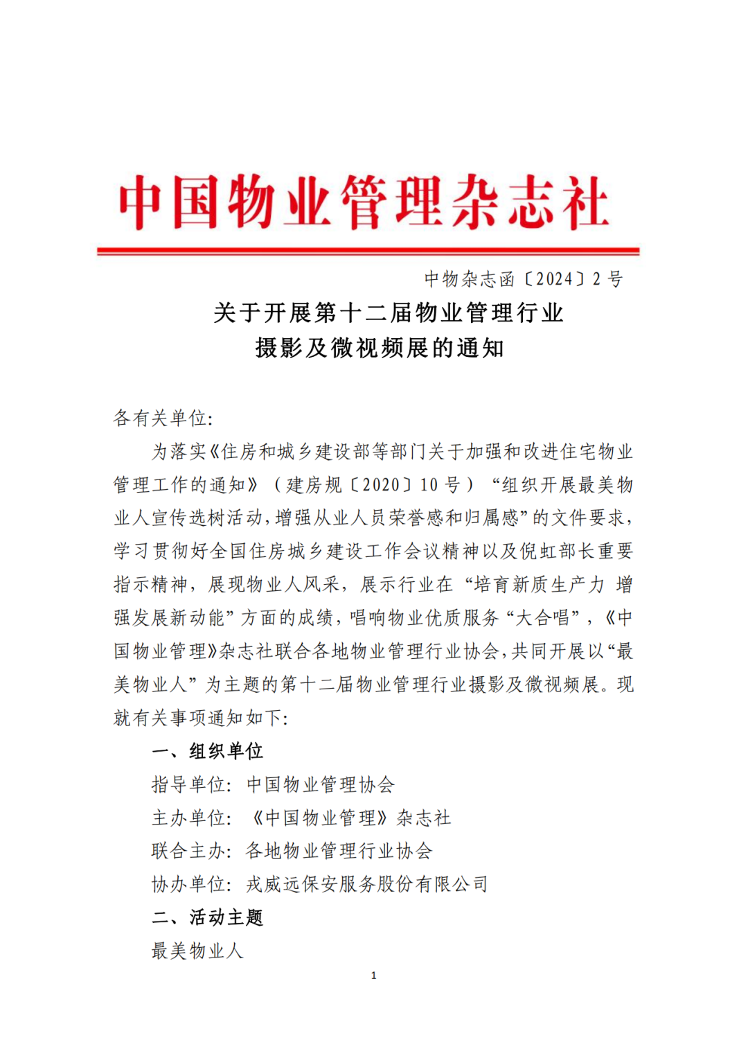 关于开展第十二届物业管理行业摄影及微视频展的通知