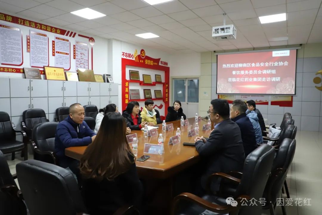 为增进会员间的信息交流,了解会员企业发展状况,更好促进协会与会员企业的合作、互助、共赢。2月22日下午,柳州市柳南区食品安全行业协会餐饮服务委员会会员在协会联合党委第一书记杨新、协会第三小组组长金政的带领下,莅临会员单位花红药业集团走访调研。花红药业集团生产总经理张艳华、生产总监潘开林接待调研。