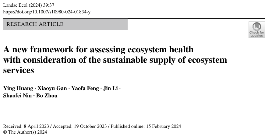 结论:纳入生态系统完整性和可持续供给的改进评估框架为理解生态系统的复杂内在特征和人环境耦合系统中的区域人与自然联系提供了新的视角。我们的研究结果可作为在不断变化的世界中实现景观可持续性的实际景观治理的科学参考。