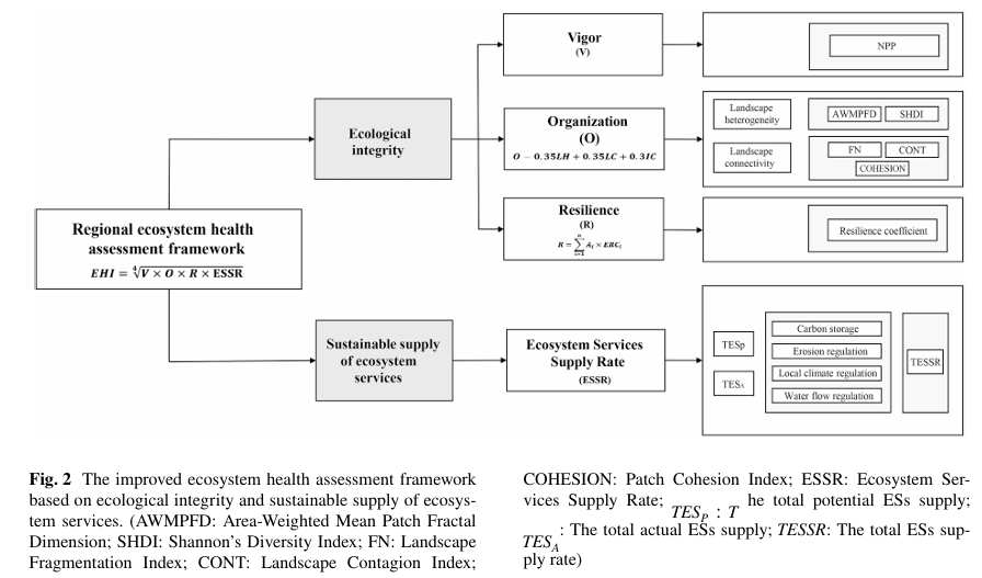 方法:从人环境系统的角度出发,建立了活力、组织、韧性、生态系统服务供给率4个指标的改进评估框架。然后,在2000年至2020年中国的案例研究中证明了改进后的评估框架的性能。