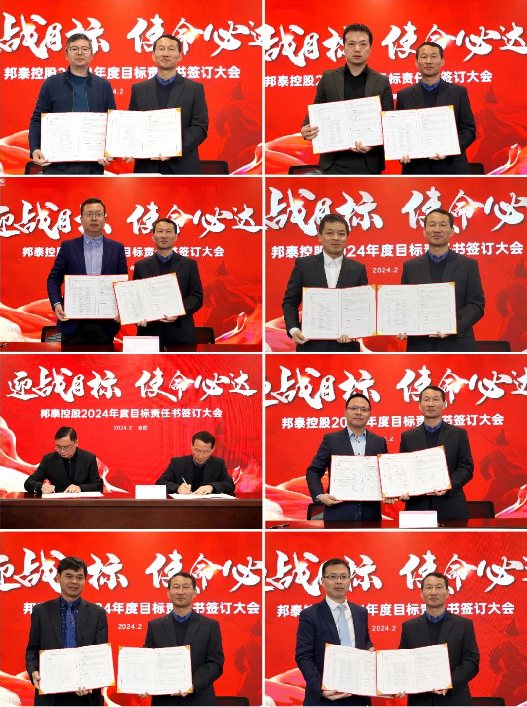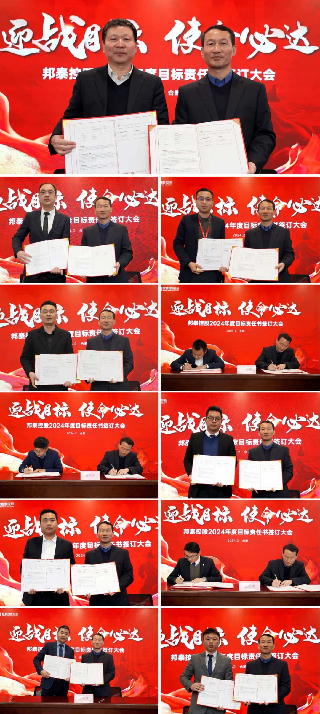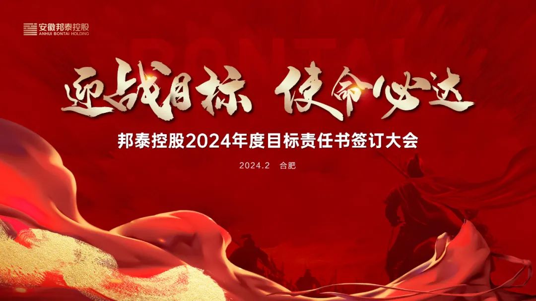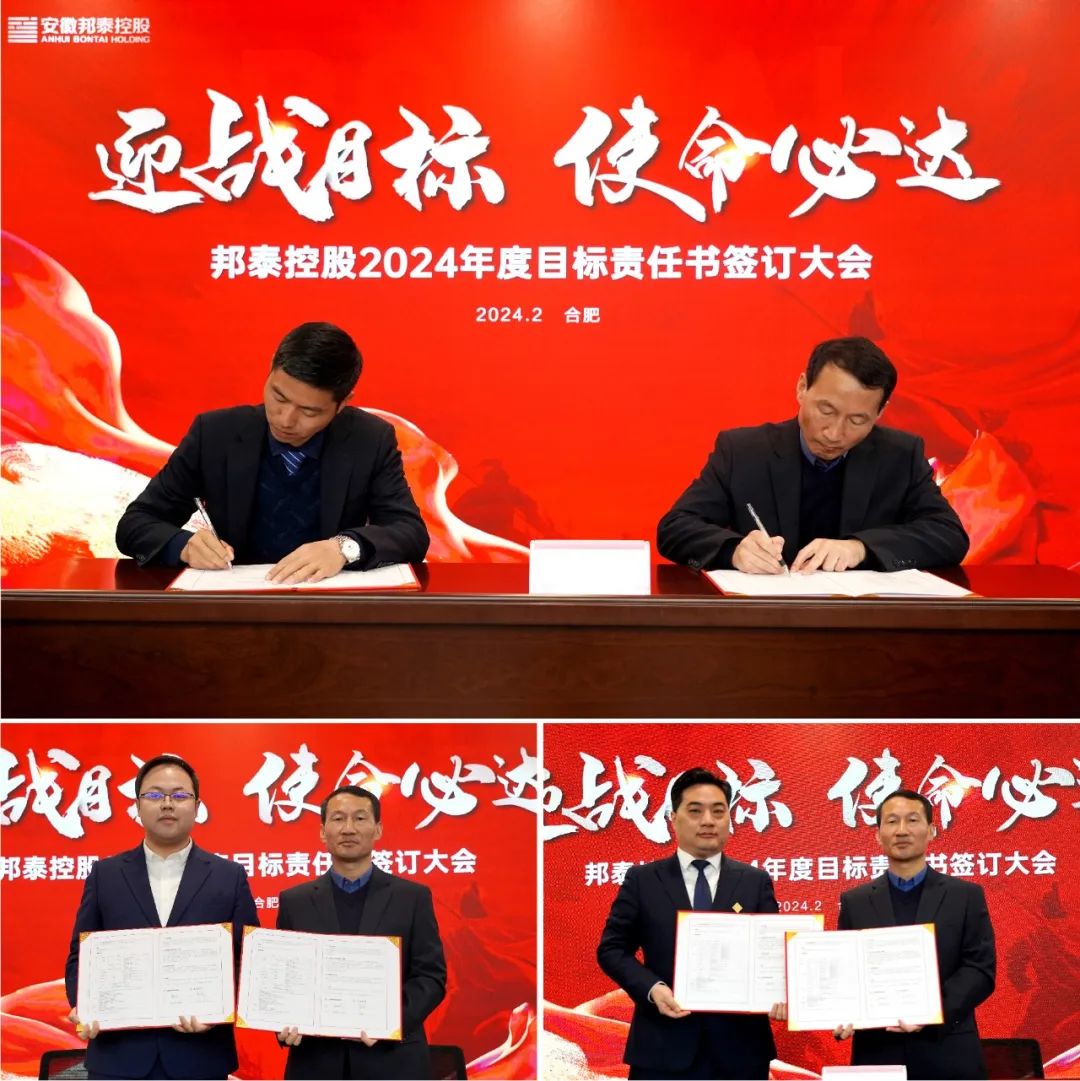 明誓立壮志,聚力启新程。为进一步明确年度工作目标,强化责任落实,2月22日上午,安徽邦泰控股集团“2024年度目标责任书签约仪式”在邦泰科技城A座19楼报告厅举行。部署规划2024年经营目标,签订2024年度各业务板块目标责任书。集团总裁陈昌新、执行总裁陈勇、副总裁王庚印、助理总裁吴兵、集团高管团队出席会议,各职能中心、产业、项目公司总经理及核心管理人员参加。