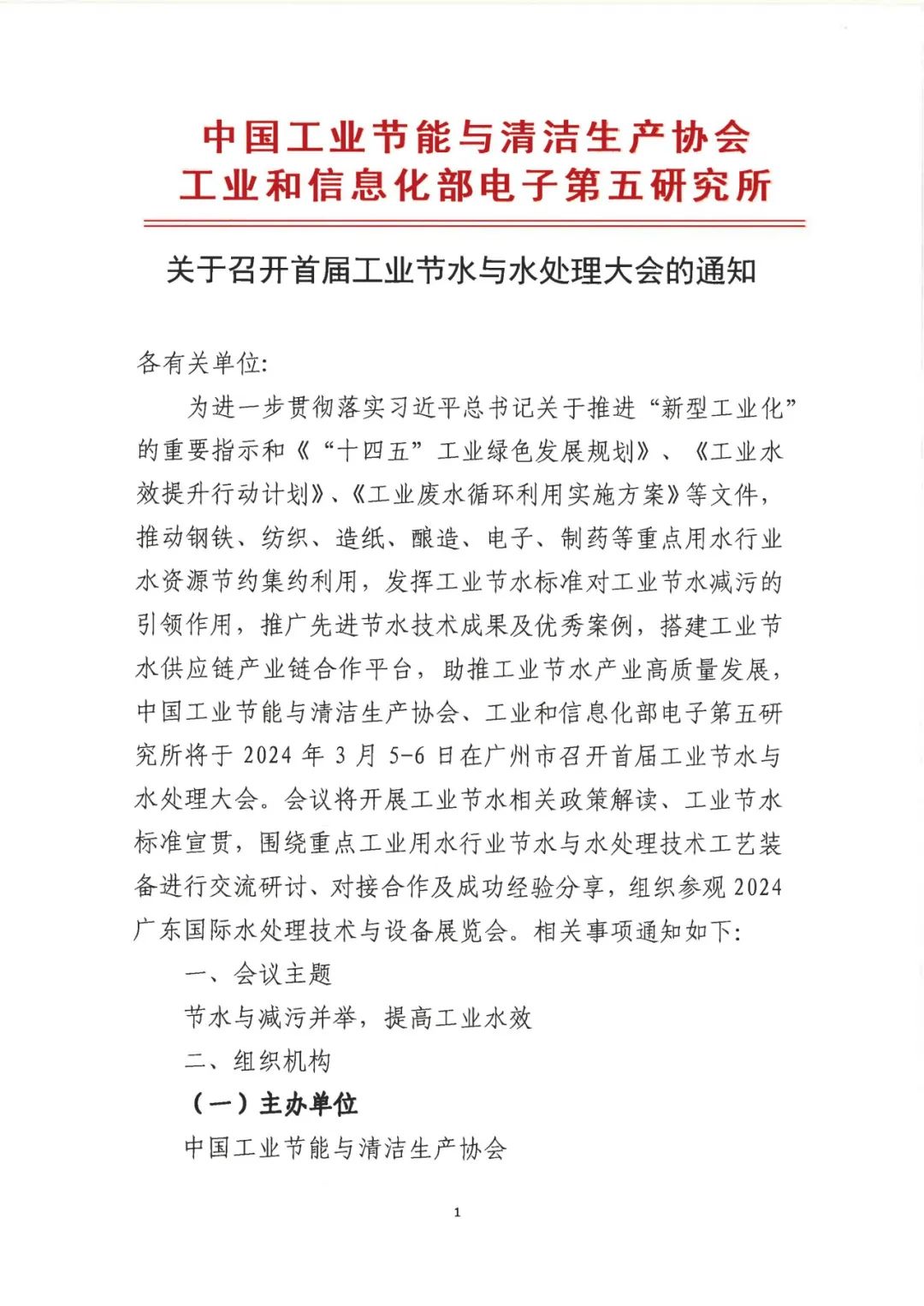 为进一步贯彻落实习近平总书记关于推进“新型工业化”的重要指示和《“十四五”工业绿色发展规划》、《工业水效提升行动计划》、《工业废水循环利用实施方案》等文件,推动钢铁、纺织、造纸、酿造、电子、制药等重点用水行业水资源节约集约利用,发挥工业节水标准对工业节水减污的引领作用,推广先进节水技术成果及优秀案例,搭建工业节水供应链产业链合作平台,助推工业节水产业高质量发展,中国工业节能与清洁生产协会、工业和信息化部电子第五研究所将于2024年3月5-6日在广州市召开首届工业节水与水处理大会。会议将开展工业节水相关政策解读、工业节水标准宣贯,围绕重点工业用水行业节水与水处理技术工艺装备进行交流研讨、对接合作及成功经验分享,组织参观2024广东国际水处理技术与设备展览会。
