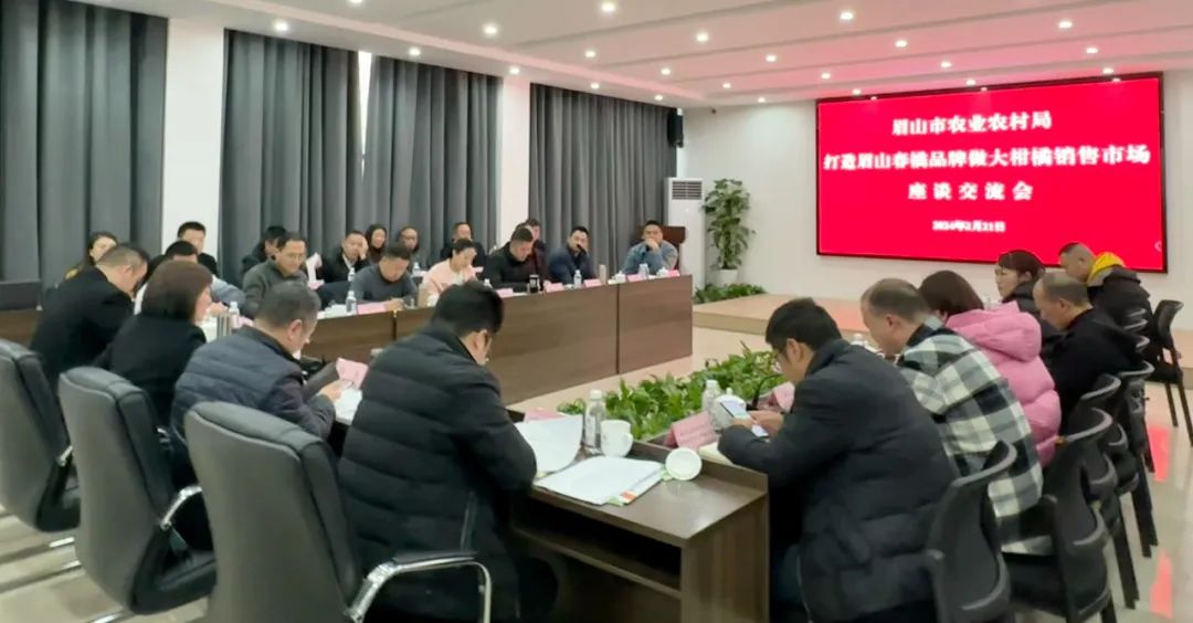 2月21日,市农业农村局副局长钟涛组织柑橘产业重点县(区)农业农村局分管负责人、业务骨干,全市柑橘经销商、职业经理人代表,农投公司董事长、分管领导共37人齐聚农投公司,围绕眉山柑橘现有销售渠道开展座谈交流,探讨打造眉山春橘品牌、做大柑橘销售市场的工作重点和有效路径,市农业农村局经济作物站站长陈德勇主持会议。