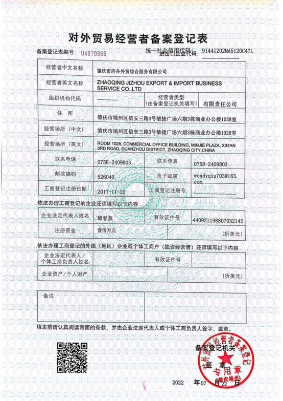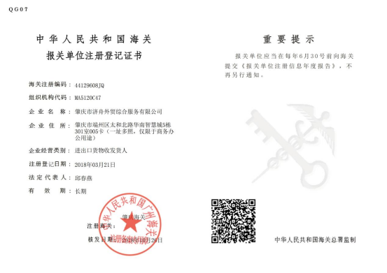 肇庆市济舟外贸综合服务有限公司成立于2017年,成立至今我们专注于外贸服务领域;从进出口代理开始,逐步成长为一家涵盖进出口代理、国际采购、报关和商检、国际收汇,物流、财税、深度服务于一体的外贸综合服务企业。肇庆济舟一直秉承“为了你的交付,我们全力以赴”的经营理念,不断为肇庆本土跨境电商企业合规化、便利化、简单化努力。