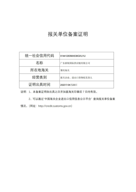 报关行企业资质: