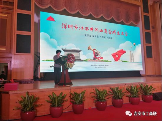 成立大会上,深圳市井冈山商会会长、深圳市新琪安有限公司董事长王小强作大会成立报告,井冈山市委常、统战部长、政法委书记尹忠善同志代表井冈山市委、市政府发表了热情洋溢的贺辞,吉安赣商联合会常务副会长戴荣明到会祝贺并宣读了贺信,吉安市委常委、统战部长、总工会主席肖玉兰同志莅临大会并作重要讲话。