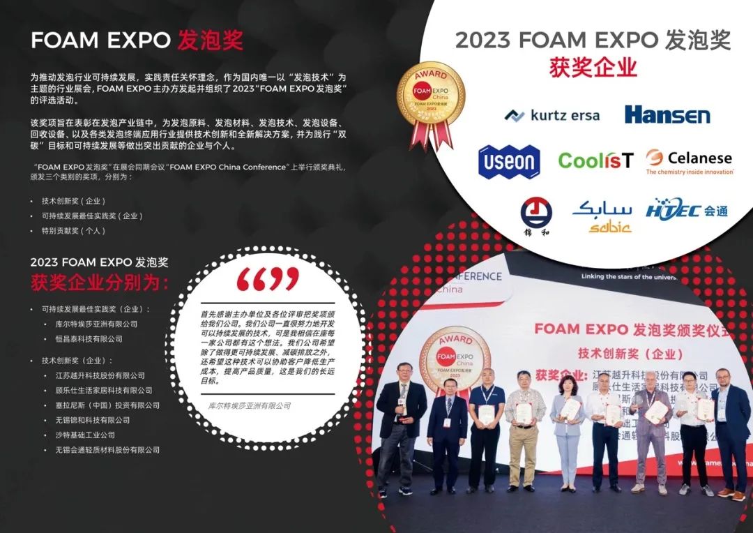 FOAM EXPO是由英富曼(Informa)会展集团 (塔苏斯展览集团已于2023年底并入Informa)主办、全球发泡技术行业领先的系列品牌展会,已在美国和欧洲等地分别成功举办了多届 FOAM EXPO North America和FOAM EXPO Europe发泡行业展会。