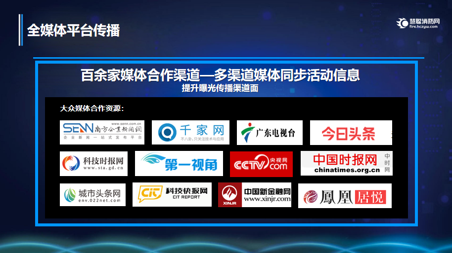 信息时代“酒香也怕巷子深”,交易会期间,慧聪消防网将围绕交易会布局“图+文+视频+直播”的多媒体矩阵传播,“线上+线下”方式扩大传播面,实现视听体验和互动的深度链接,助力消防安全产业的传播发展。