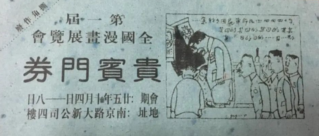 1936年,在上海南京路西藏路口的大新公司四楼展厅举行的第一届全国漫画展览会,共展出政治时事讽刺漫画、社会生活风俗漫画、人物肖像漫画、连环漫画等600余件,这一展览成为中国漫画史上的一个亮点。