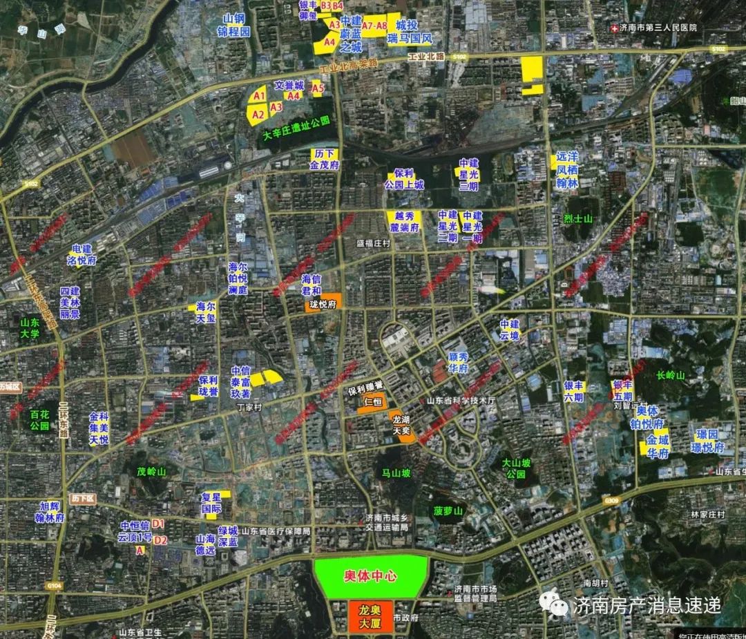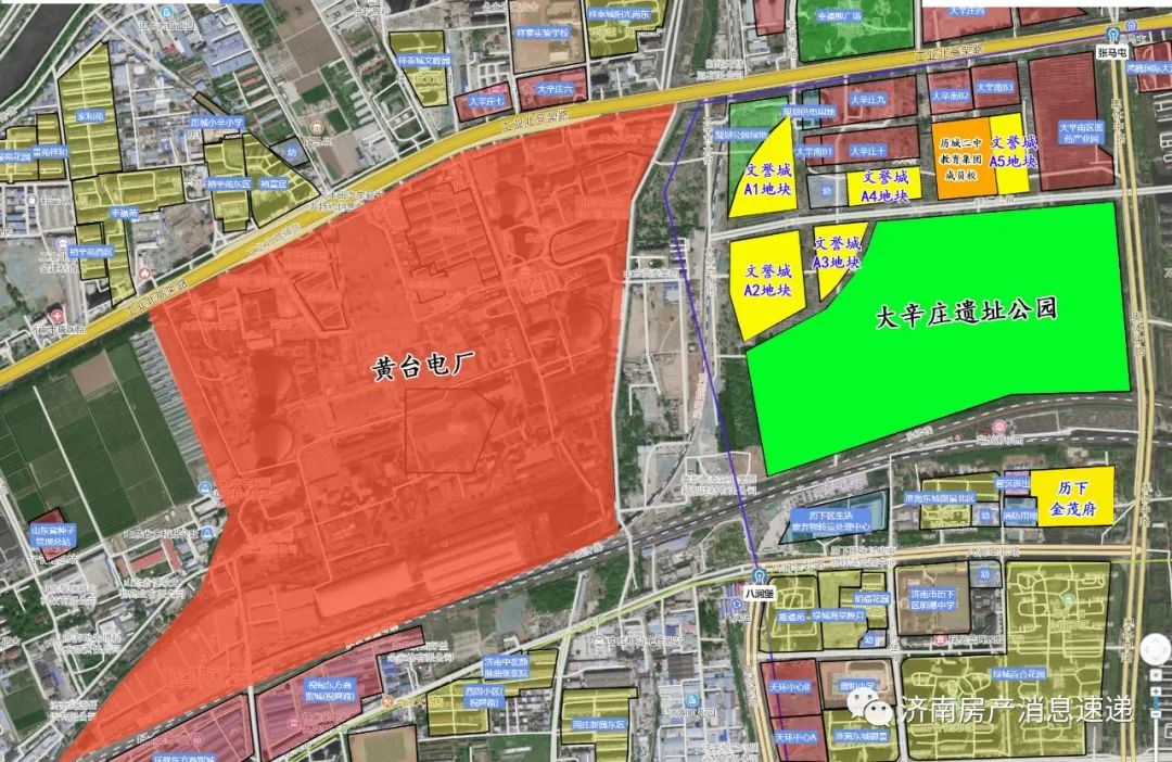 项目距离黄台电厂比较近,最近的A-1地块虽然价格很合适,但与黄台电厂仅一路之隔。而距离商业以及地铁最近的,是A-5地块,距离3号线张马屯站400米多点,距离万虹广场1.7公里左右,距离龙湖天街2.7公里左右