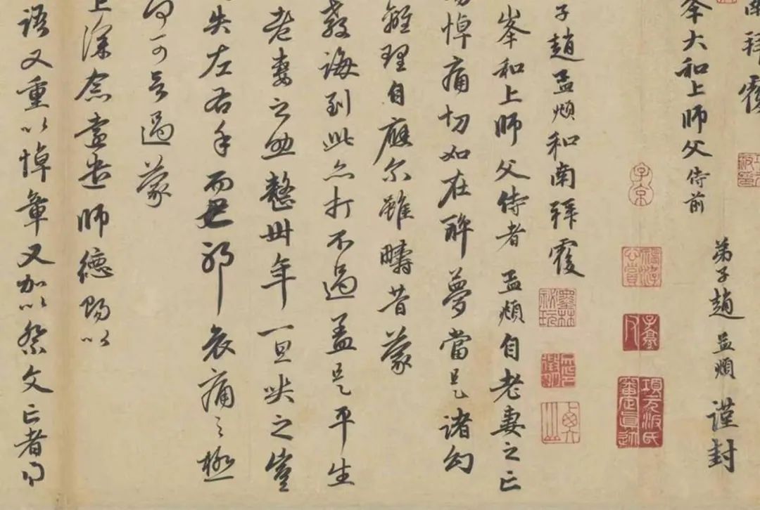 《赵孟頫致中峰和尚尺牍》局部,元代赵孟頫。