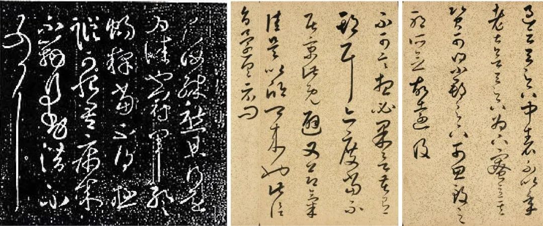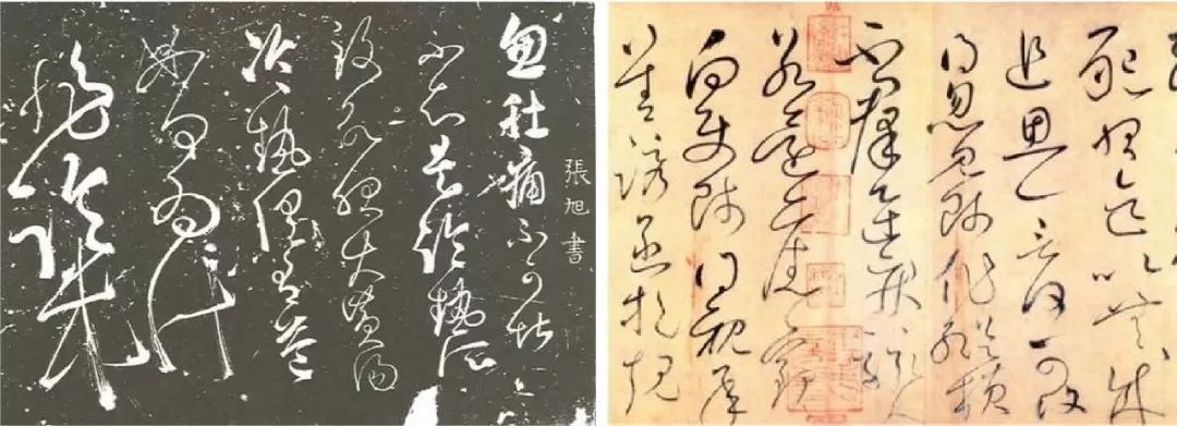 狂草:到唐朝,张旭、怀素将今草写得更加放纵,笔势连绵回绕,字形变化繁多,成为狂草。狂草是对发展到唐代的官方正式书体、尊崇法度的唐楷的叛逆,从平正走向充满艺术感性的险绝、癫狂。狂草奇形怪状、粗细对比夸张,发展至中唐时期臻于化境,唐代的书法家怀素狂草继承张旭,二人并称“颠张醉素”。