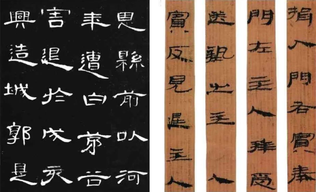 魏碑:魏晋时期出现的碑刻是先用毛笔书写,然后交由刻工雕刻。刻工的刻刀平正尖锐,因此圆笔方,裁曲就直,所以其风格会透露出刀法的利落、明快、刚硬,正因为书刻工具和对象质地的原因,其逐渐自成流派。魏碑继承了汉隶的遗风,笔法古拙劲正,而风格质朴方严。