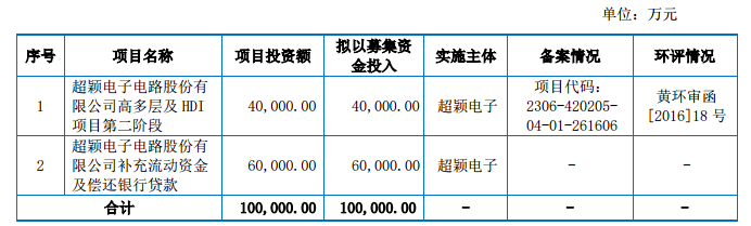 超颖电子主营业务是印制电路板的研发、生产和销售,产品广泛应用于汽车电子、显示、储存、消费电子、通信等领域,产品涵盖双面板至二十六层板、HDI板、厚铜板、金属基板、高频高速板等。公司拥有黄石和昆山两处生产基地,年产能超过300万平方米。公司以汽车电子PCB为主,是国内少数具备多阶HDI及任意层互连HDI汽车电子板量产能力的公司之一,与大陆汽车、法雷奥、博世、安波福等全球Tier 1汽车零部件供应商及特斯拉等知名新能源汽车厂商建立了稳定合作。超颖电子本次计划募资10亿元,扣除发行费用后,公司将用于扩大生产规模、补充流动资金及偿还银行贷款等项目。其中,4亿元用于超颖电子电路股份有限公司高多层及HDI项目第二阶段,6亿元用于补充流动资金及偿还银行贷款。