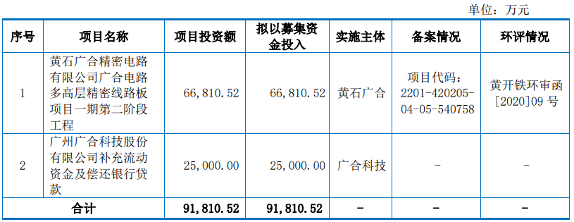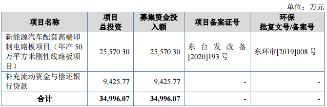 公司是一家专业从事印制电路板研发、生产和销售的高新技术企业,产品涵盖单面板、双面板和多层板。经过多年技术研发及工艺技术积累,产品类型涵盖铜基板、铝基板、厚铜板、陶瓷板、埋容/埋阻材料线路板、高频/高速材料线路板等特殊基材、特殊工艺类型的产品。公司产品广泛应用于消费电子、汽车电子、工业控制、家用电器、通信设备等领域。招股说明书显示,公司本次募集资金扣除发行费用后,预计约3.5亿元用于新能源汽车配套高端印制电路板项目(年产50万平方米刚性线路板项目)以及补充流动资金与偿还银行贷款。图片来源:企业招股书