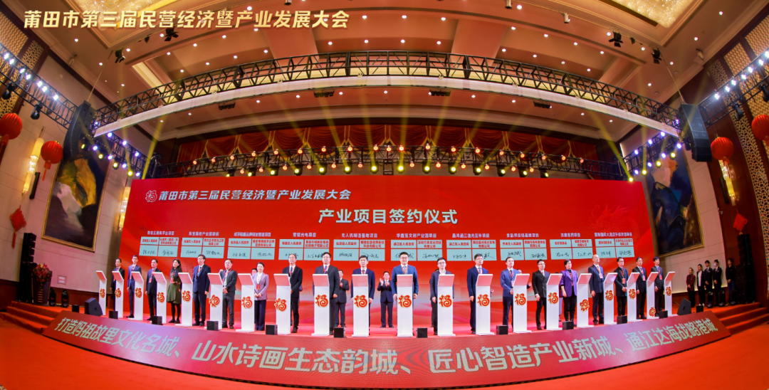 现场还举行了“中国食品产业名城·莆田”授牌仪式,“天下莆人”平台上线仪式,聘任第二批民营企业“科技副总”仪式,第二届市政府质量奖、质量奖提名奖授牌仪式,“突出经济贡献”企业授牌仪式,政银合作签约仪式;发布了《莆田市民营企业家共同宣言》;进行了30个产业项目集中签约,计划总投资303亿元,涵盖鞋服、食品、新能源等多个领域。