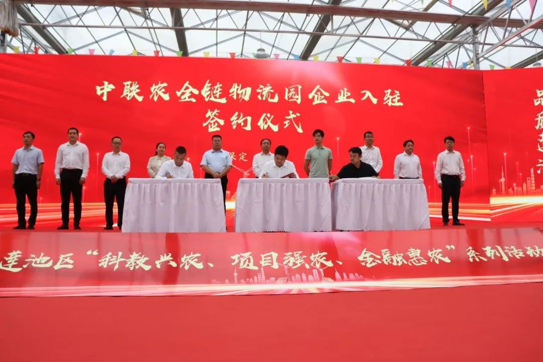 2023年4月,中联农集团助推农业大咖进莲池--都市农业项目以商招商推介签约活动,总投资1.6亿元,和北京涉农企业建立长效对接机制,为“再造一个新保定”提供民生保障,为莲池农业的发展注入新的力量;9月,莲池区“科教兴农、项目强农、金融惠农”主题系列活动在中联农全链物流园举行,165家企业签约入驻园区,为推动莲池区未来高质量发展注入强大动力活力!