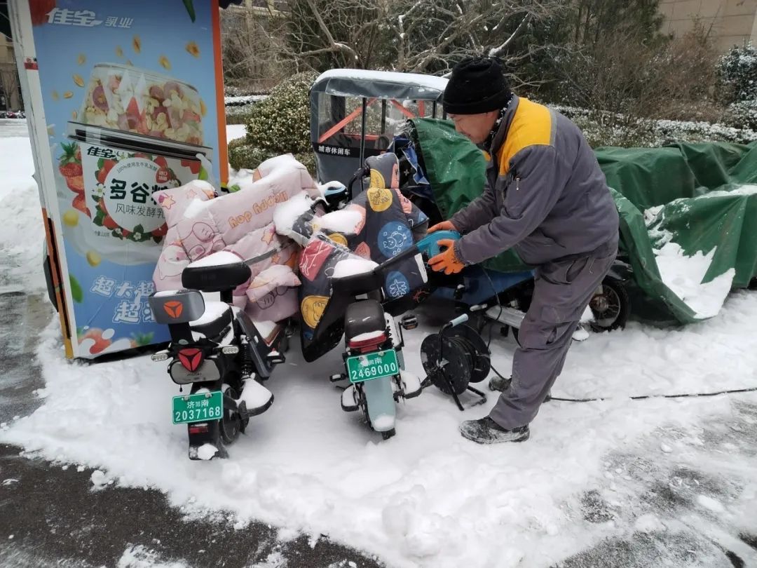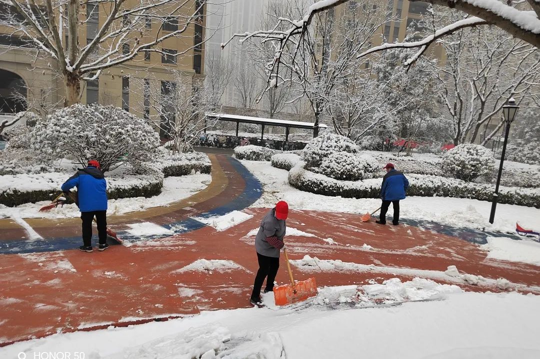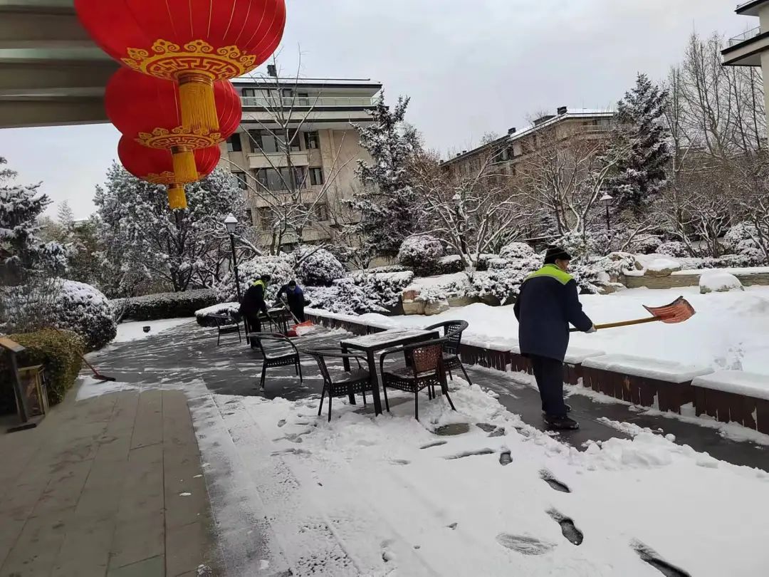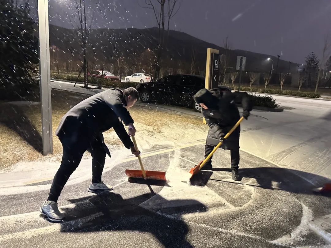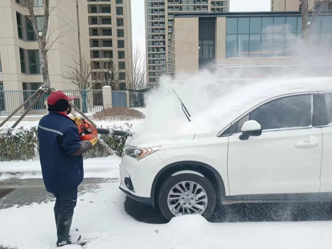 对于融创服务来说,清理雪障早已驾轻就熟;在收到降雪预报后,融创服务在北京、济南、青岛、石家庄等城市提前制定了扫雪除冰的应急预案,并充分储备了应急物资,以确保扫雪除冰工作的顺利进行。同时,我们的专业工程师们还对安全设备和用电进行了全面的安全检查,实时掌握设备运行状态,以保障各类设备在恶劣天气下的稳定运行和安全使用。