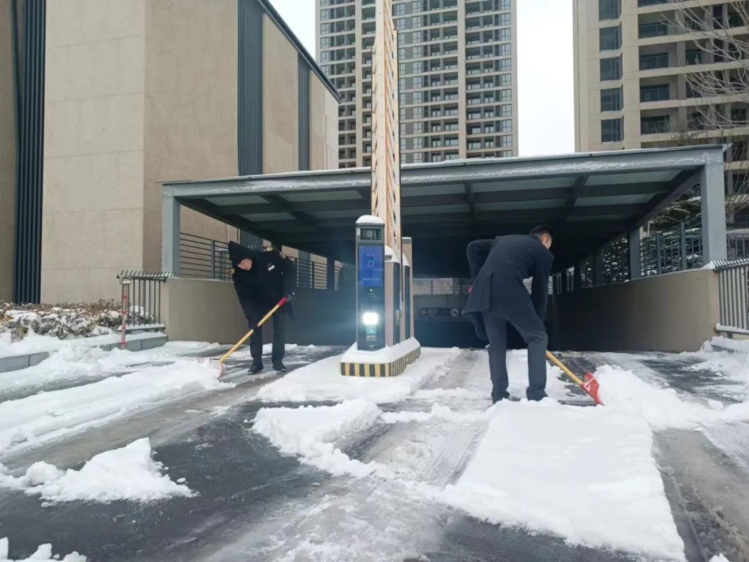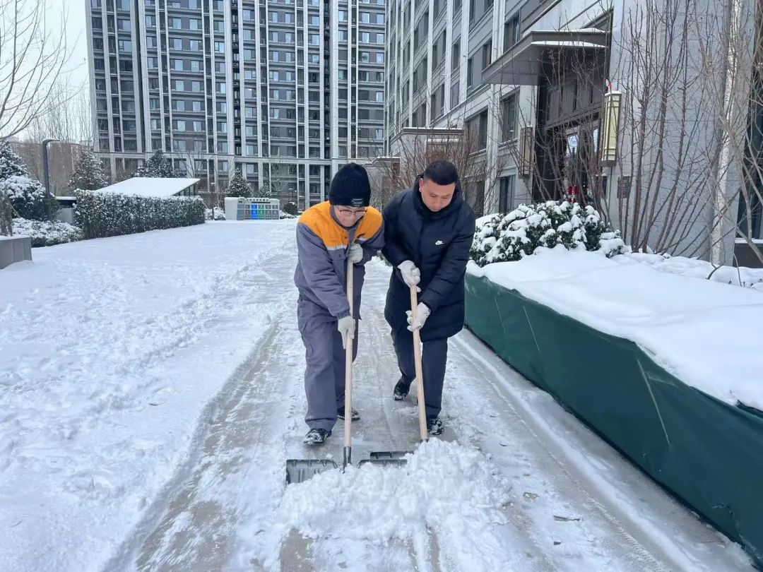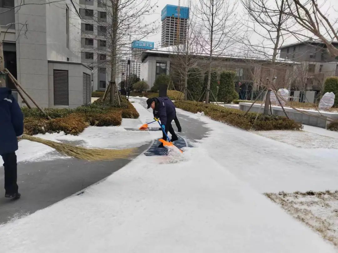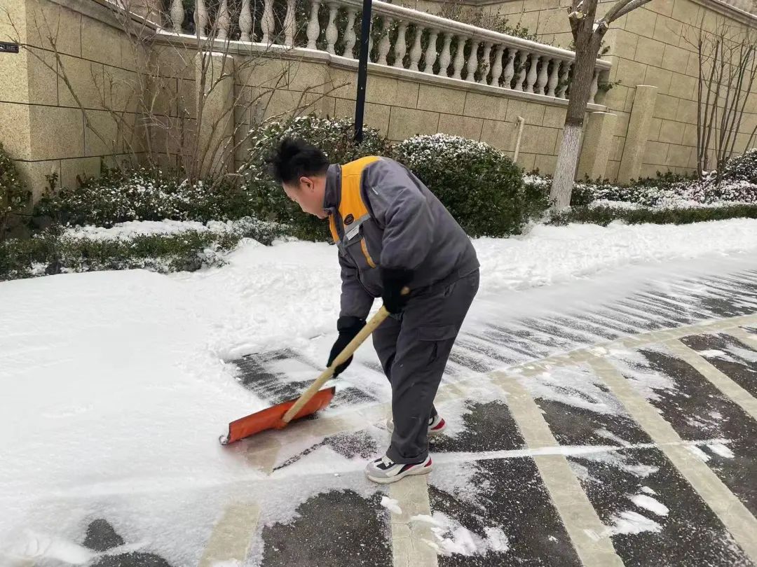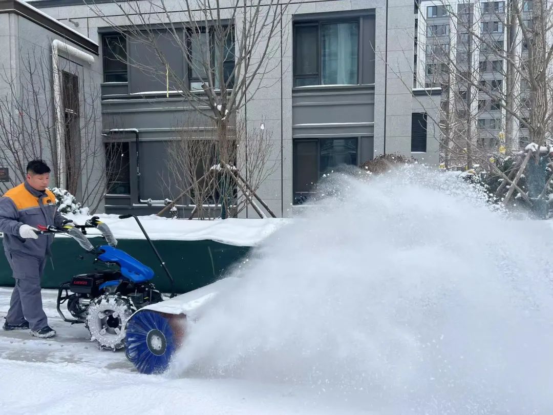 工作人员严格遵循“先主干道、后次干道,先车行道、后人行道”的清雪原则,迅速打通主干道和关键区域,确保园区交通的顺畅无阻。他们坚定前行,温情守护,用速度和温度让业主在寒冬中感受到融融暖意。