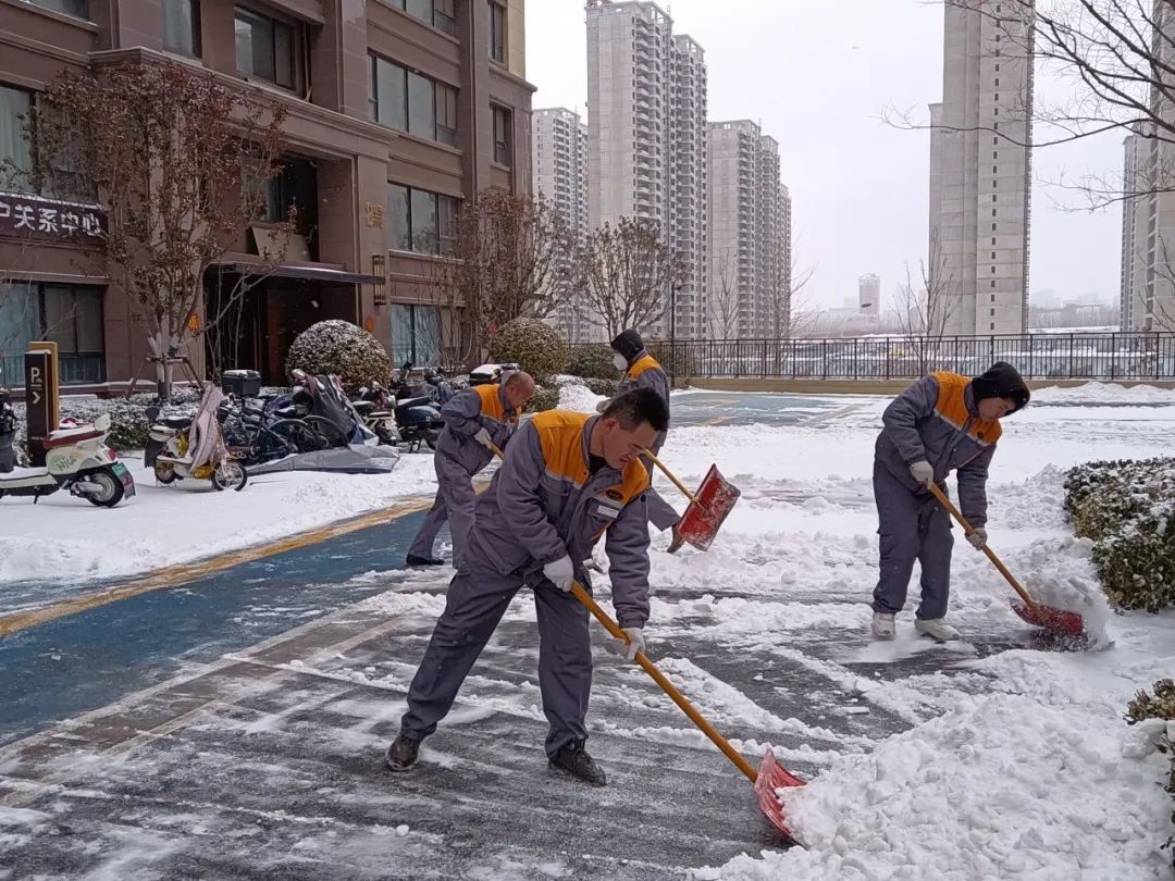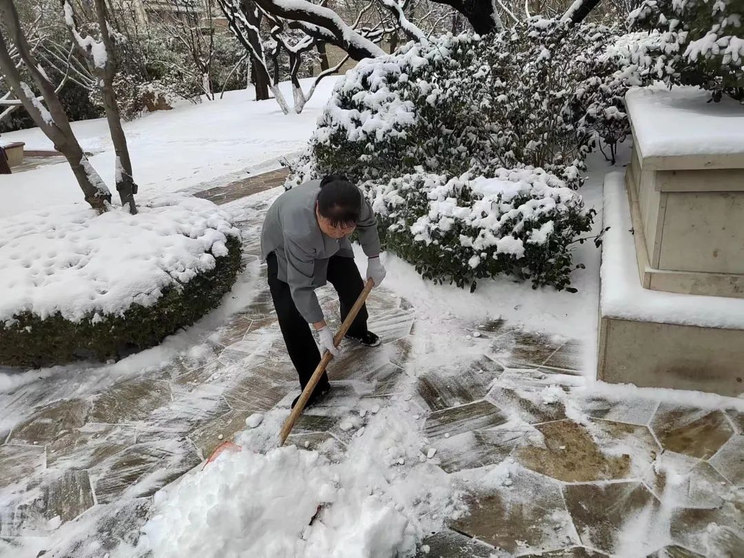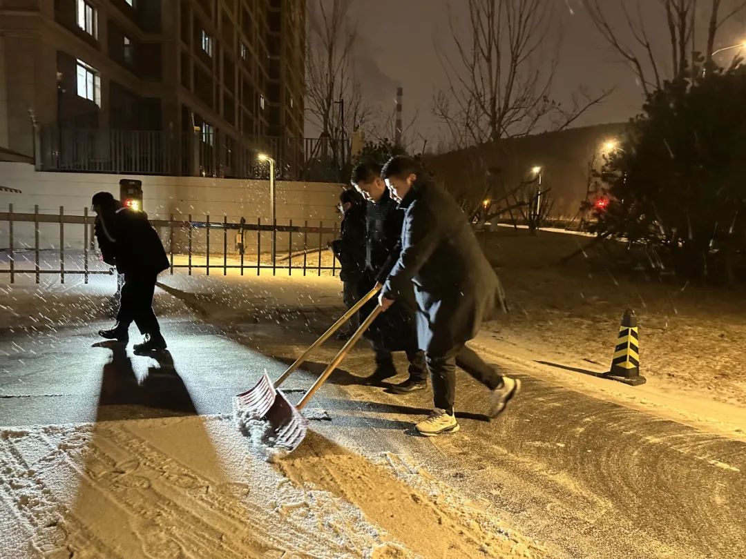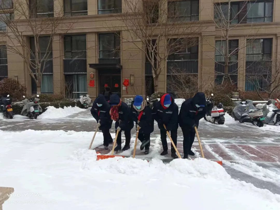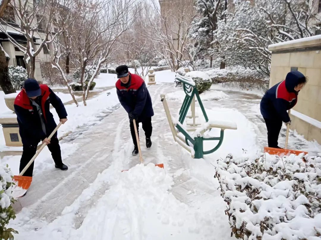 工作人员严格遵循“先主干道、后次干道,先车行道、后人行道”的清雪原则,迅速打通主干道和关键区域,确保园区交通的顺畅无阻。他们坚定前行,温情守护,用速度和温度让业主在寒冬中感受到融融暖意。