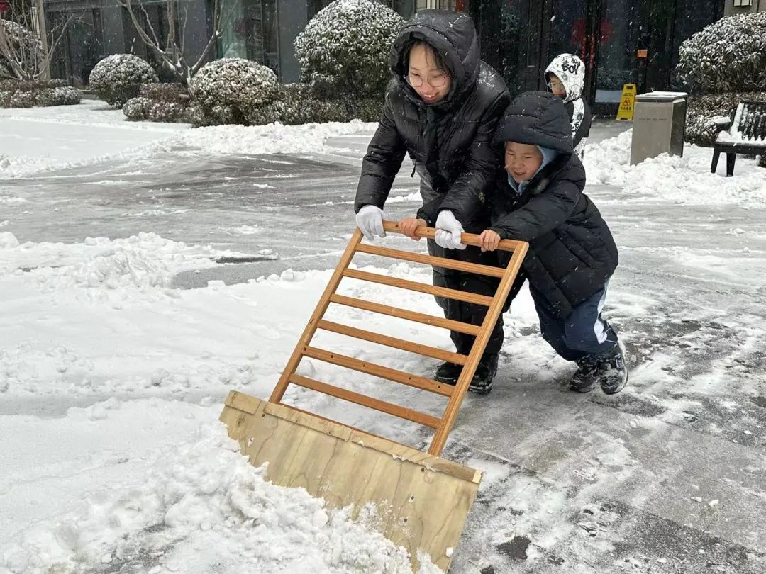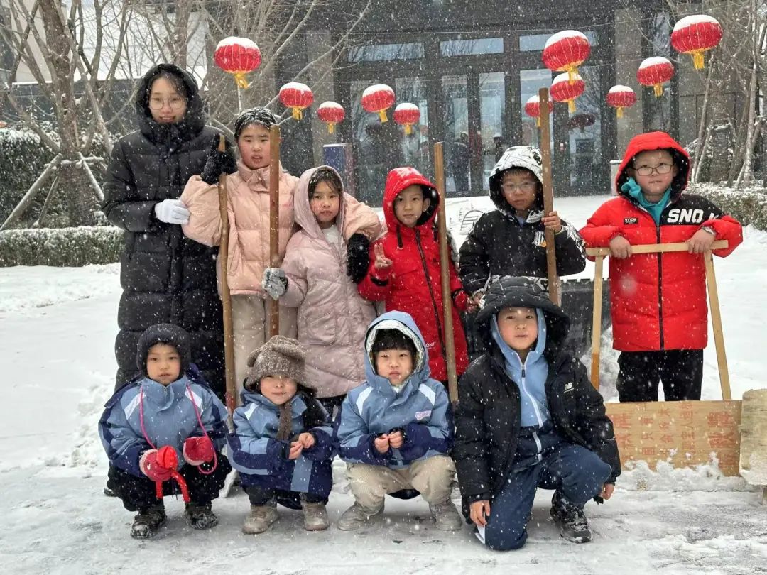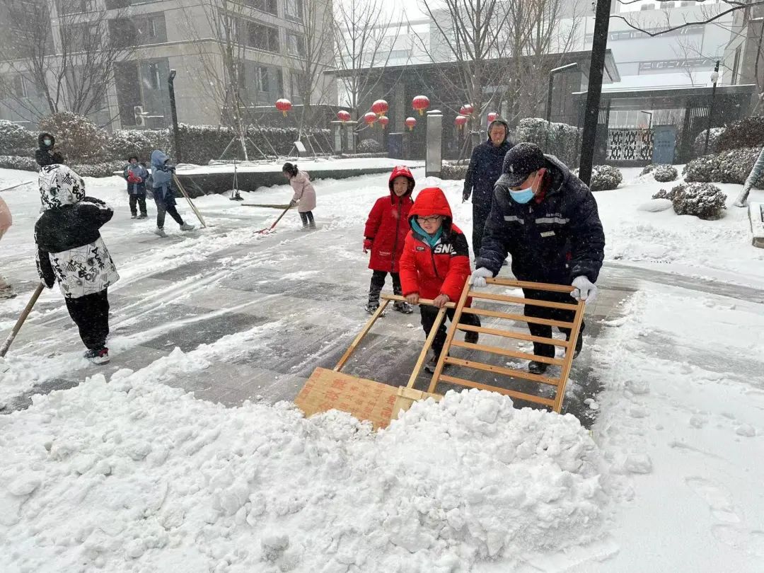 这一场清雪行动得到了业主的高度认可,业主们还自发组织了志愿者队伍,积极参与到家园的维护中。特别是石家庄融创中心环城水系项目的这支儿童志愿者队伍,在银色的背景下,为整个社区增添了更多的温情。