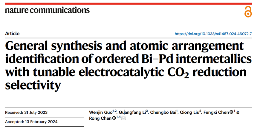 IMCs的合成,并成功应用于电催化CO2还原反应。在电催化CO2RR中表现出了高反应活性及结构依赖的选择性。进一步结合理论计算及电催化原位表征,分析了不同有序原子排布对反应中间体的吸附行为和电子转移过程的影响,从原子层面上解释了不同反应路径及结构依赖选择性的作用机制。为金属间化合物的可控合成及机制研究提供了一种新的思路。第一作者:郭文锦,现为武汉纺织大学纺织新材料与先进加工技术国家重点实验室实验员,本科、硕士均毕业于武汉工程大学(导师:陈嵘教授),研究方向为无机功能材料的精准合成及其在能源催化的应用。在Nature Communications、Applied Catalysis B: Environmental、Journal of Environmental Chemical Engineering、Science China Materials发表论文5篇。陈嵘教授课题组为武汉纺织大学徐卫林院士团队的主要课题组之一,主要致力于纤维复合材料的表界面调控和功能化研究。课题组负责人陈嵘教授系省部共建纺织新材料与先进加工技术国家重点实验室二级教授、博士生导师。湖北省“楚天学者计划”楚天学者特聘教授、享受国务院政府特殊津贴专家、湖北省新世纪高层次人才工程第一层次人选、教育部新世纪优秀人才支持计划入选者、湖北省有突出贡献的中青年专家、湖北省杰出青年基金获得者、全国石油和化工教育“教学名师”。2007-2021年武汉工程大学任教,先后担任化工与制药学院副院长、湖北省新型反应器与绿色化学工艺重点实验室主任、化学与环境工程学院院长、化工新材料研究院执行院长、国家级环境与化工清洁生产实验教学中心主任。2022年全职引进到武汉纺织大学国家重点实验室工作。主要研究方向为微纳米结构无机功能材料的精准合成及其在环境催化与吸附、纺织以及生物医药领域的应用。作为负责人先后主持国家自然科学基金6项、教育部新世纪优秀人才支持计划、湖北省创新群体、湖北省杰出青年基金、武汉市科技局科技攻关和应用基础前沿项目、湖北省和武汉市国际合作项目等20多项科研项目。在Nat.