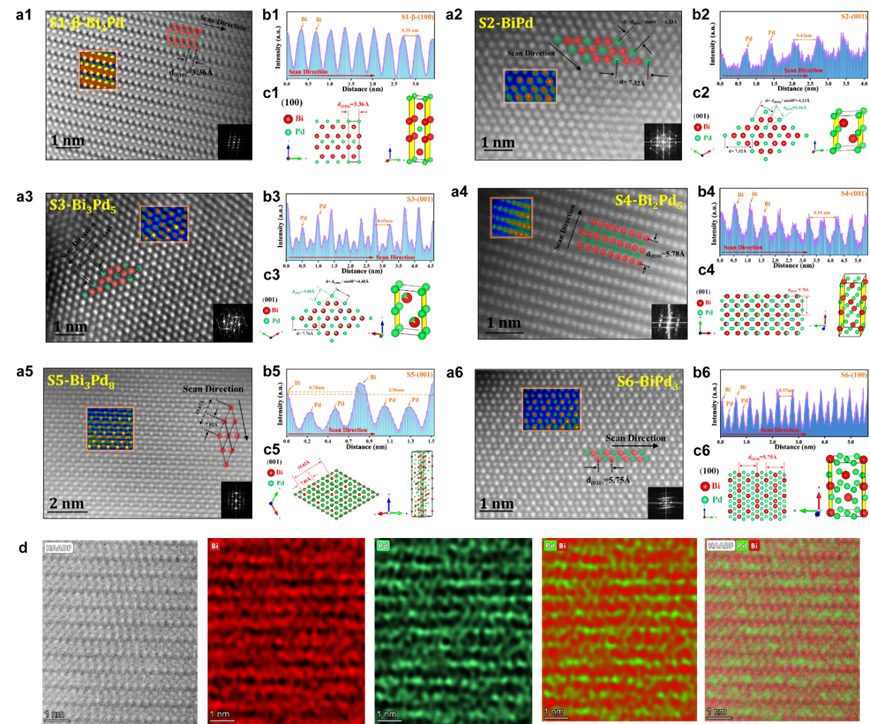 本研究提出了一种普适性的方法,实现了同一合成体系下6种不同结构组成与原子排布的Bi-Pd