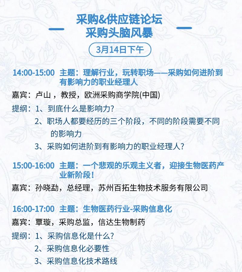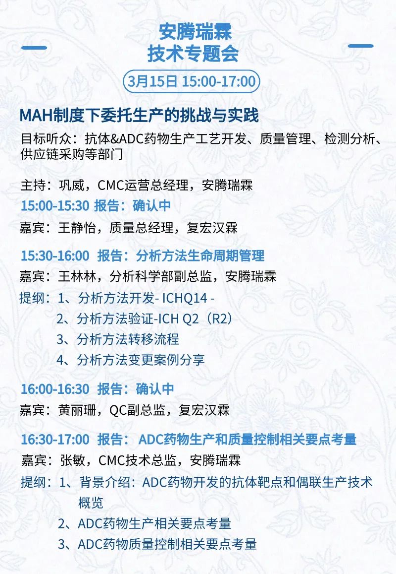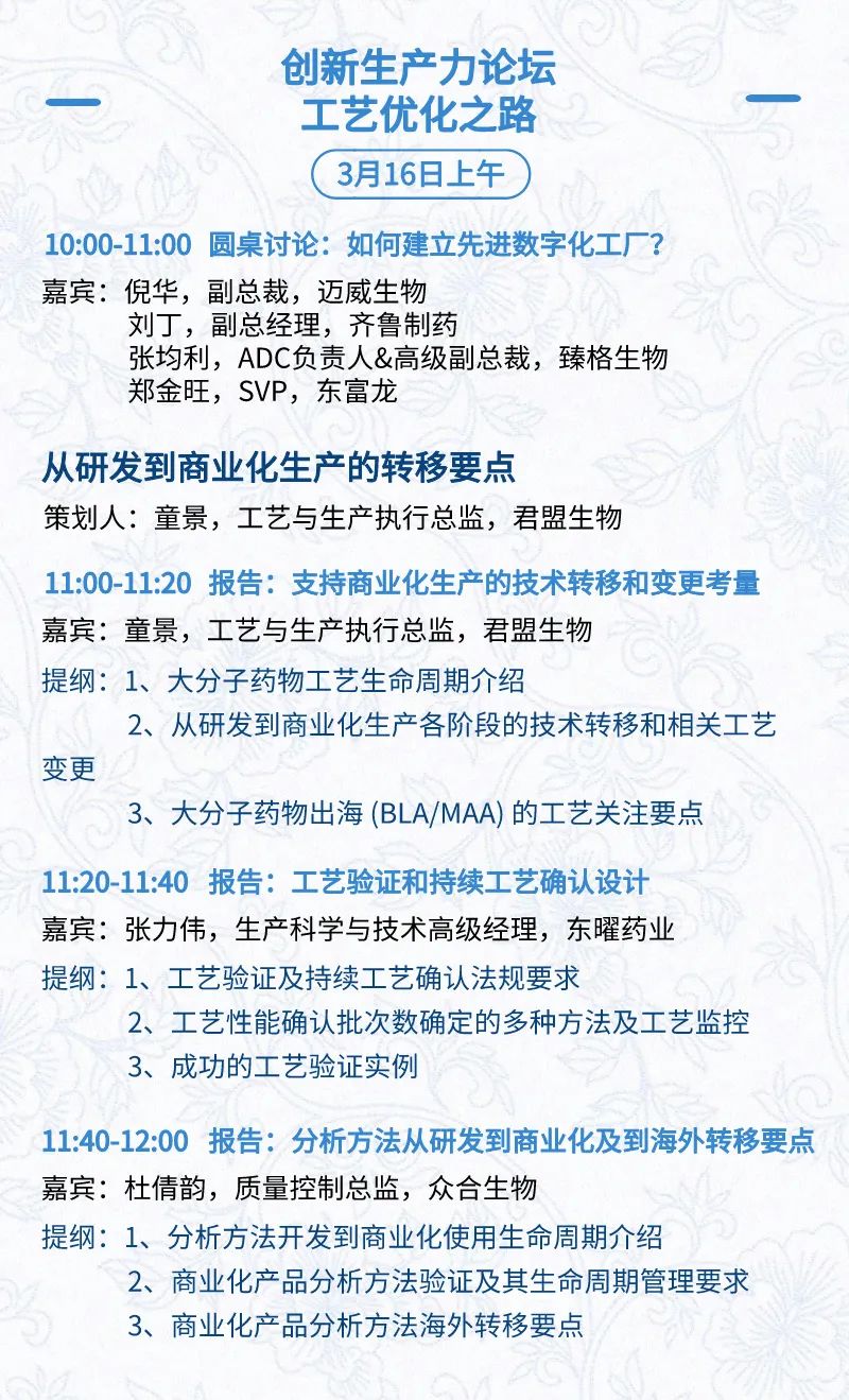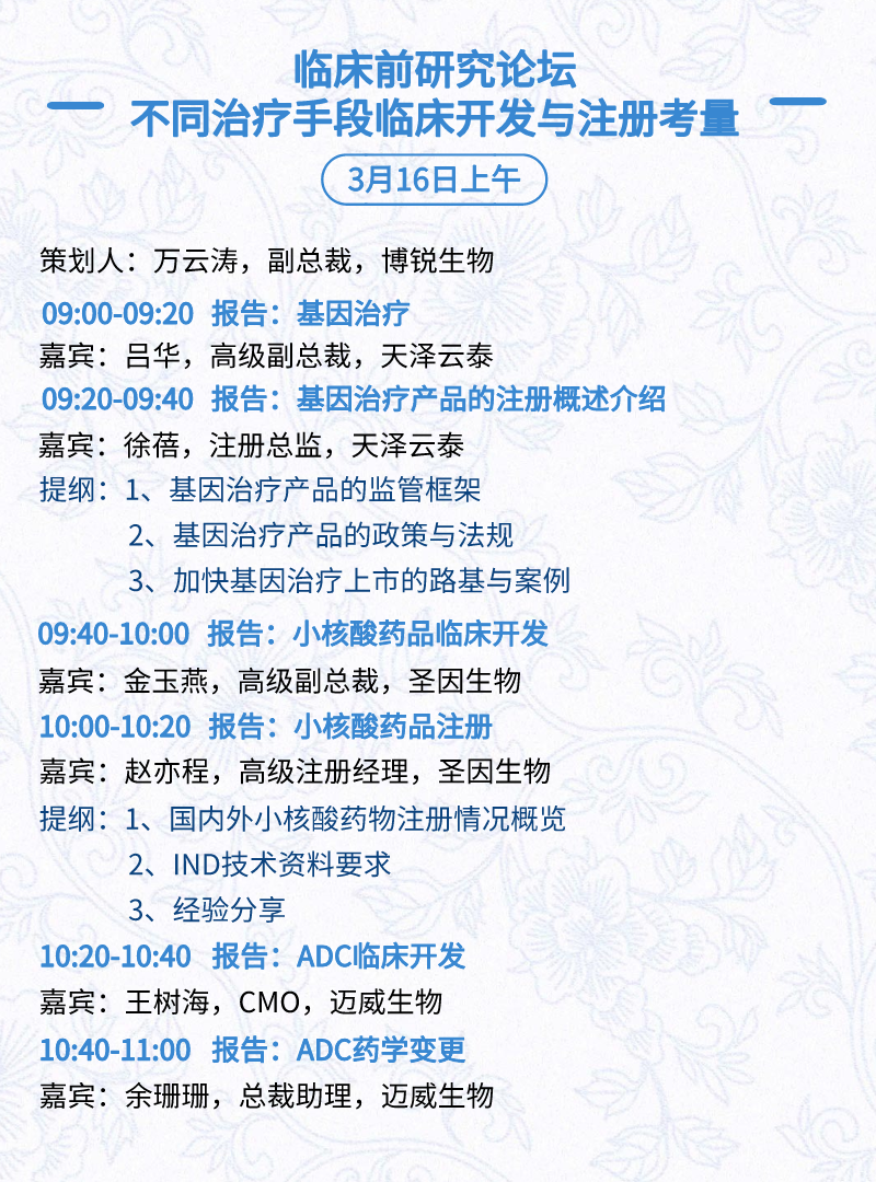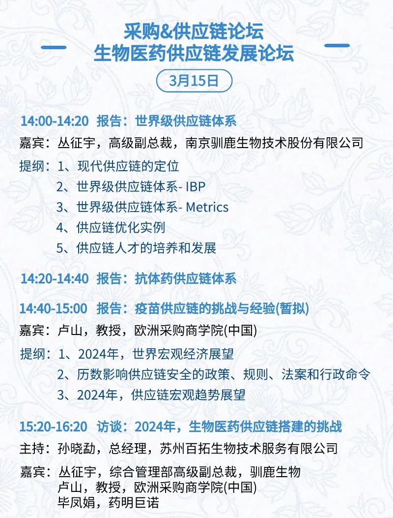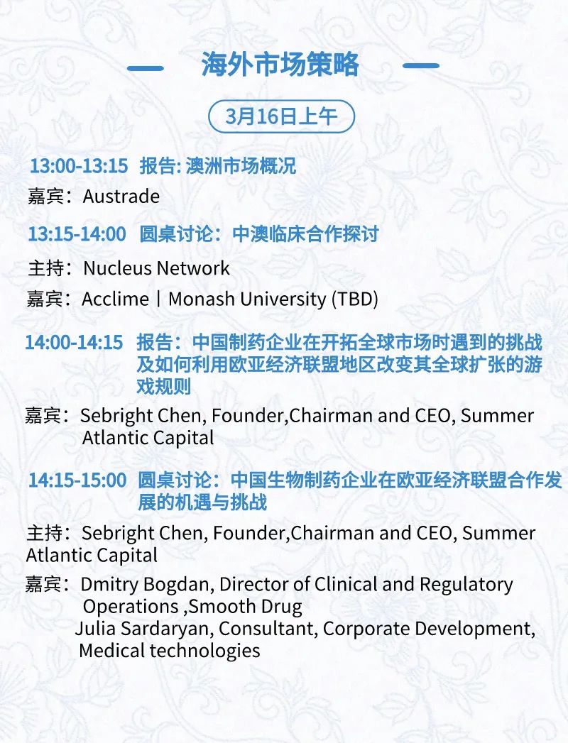 3月16日:细分赛道论坛(抗体、CGT、早研、临床、海外)、投融资&BD 论坛、中心舞台、供应链论坛