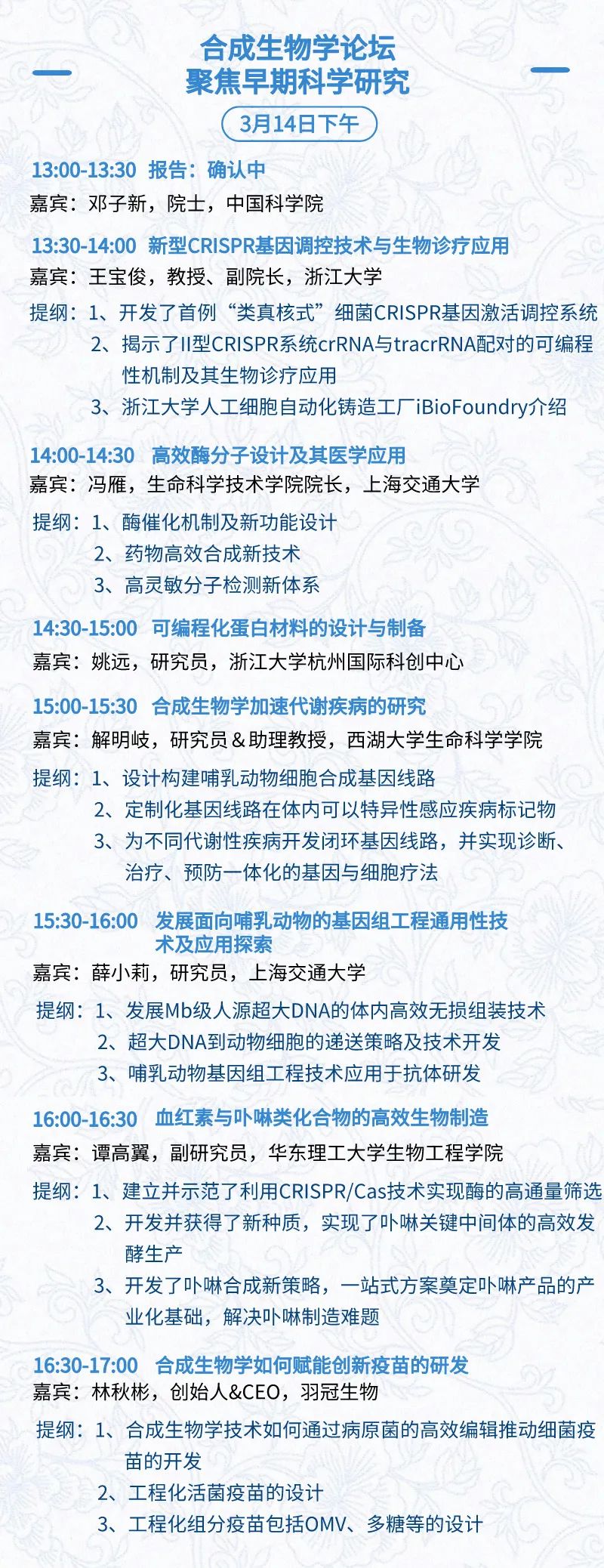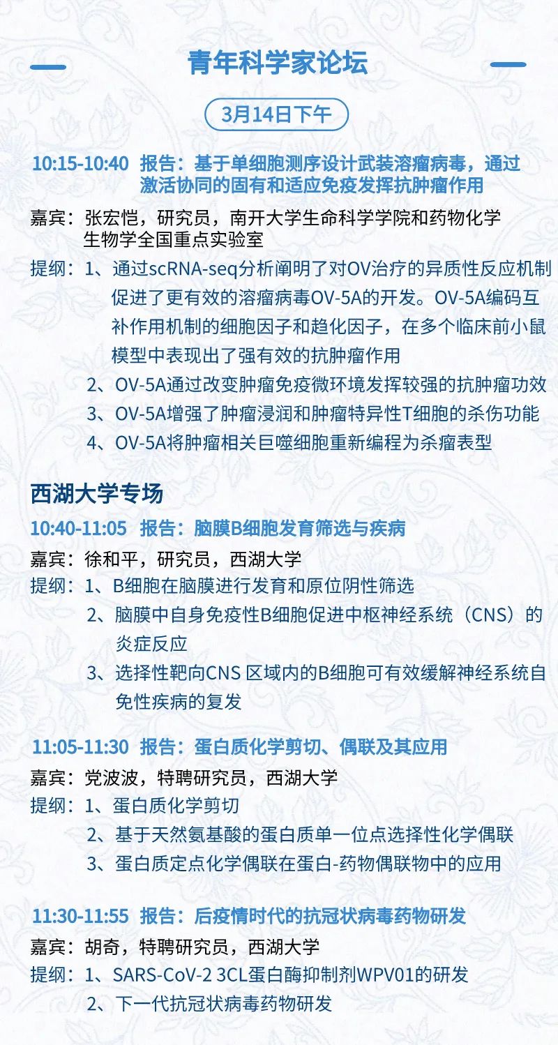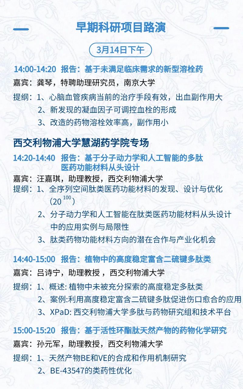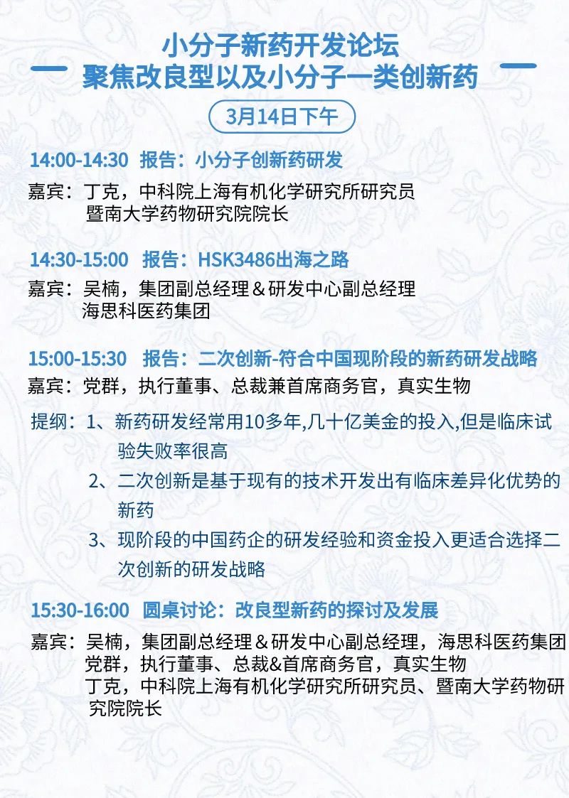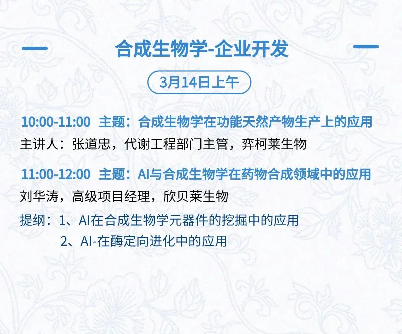 3月14日:展前开放日、小分子论坛、合成生物学论坛、投融资&BD 论坛
