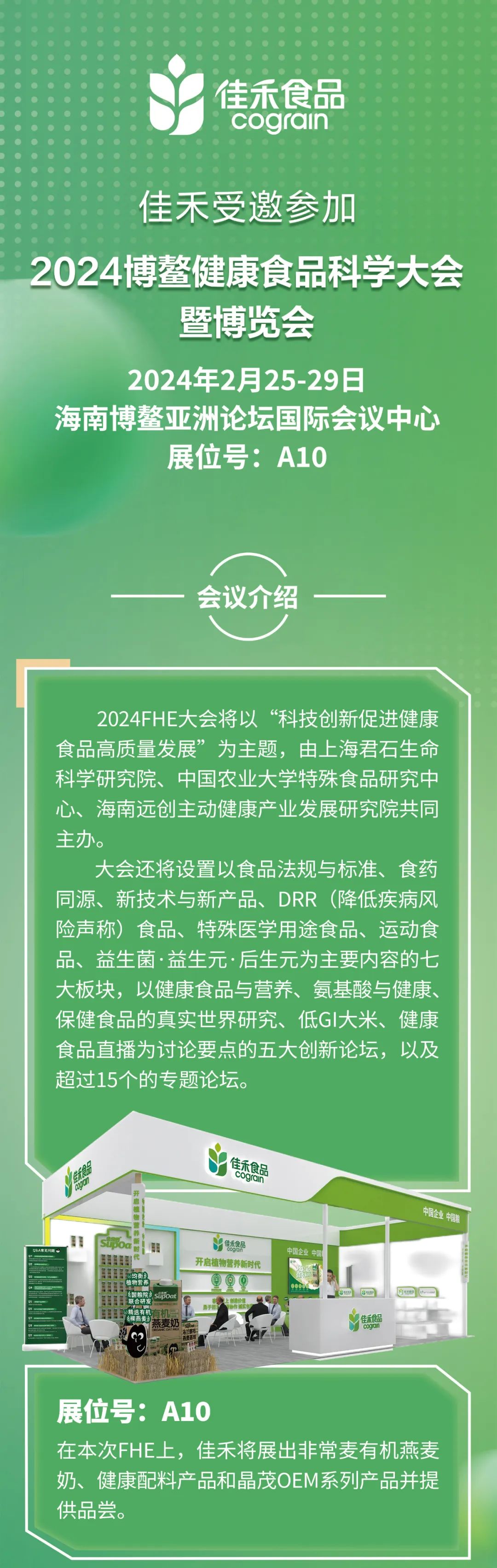 展会预告|佳禾受邀参加2024FHE博鳌健康食品科学大会