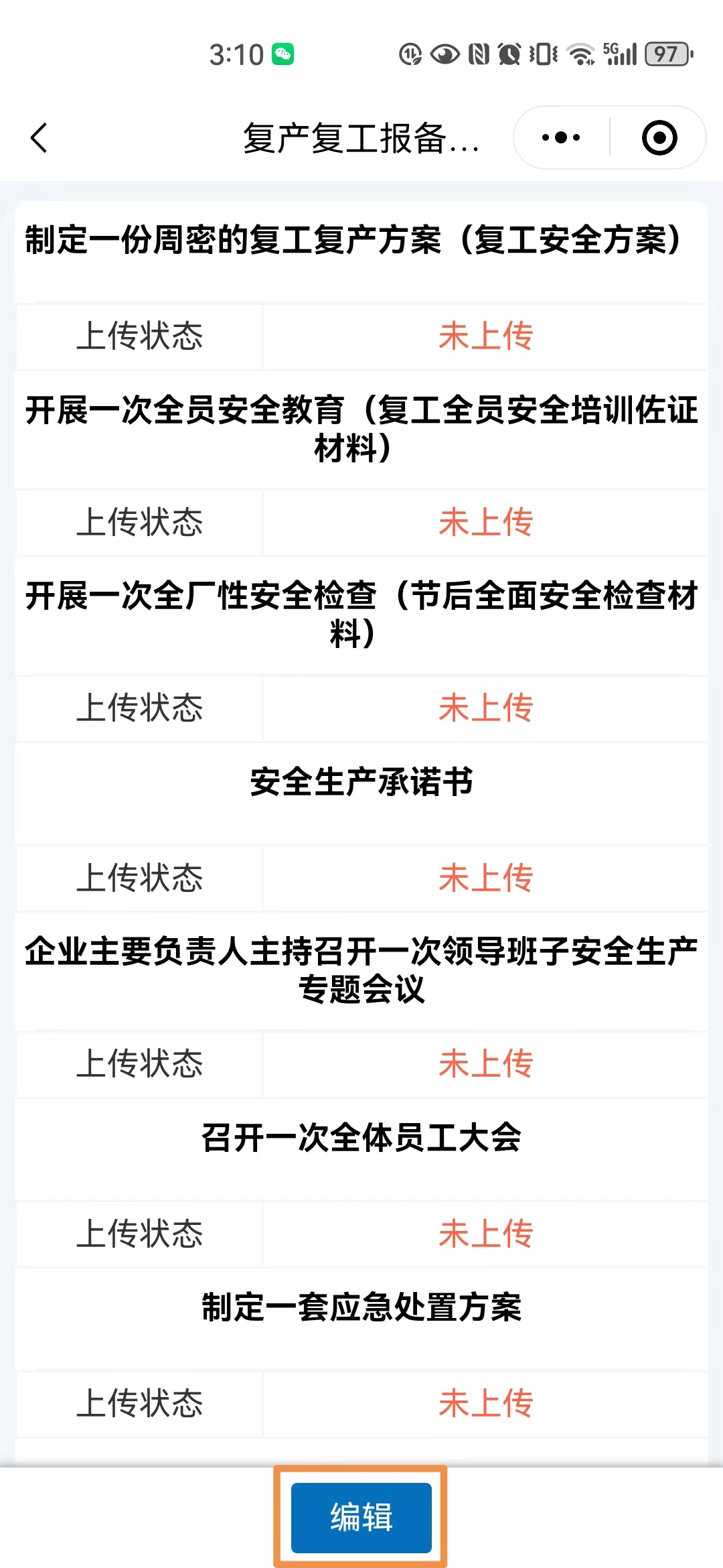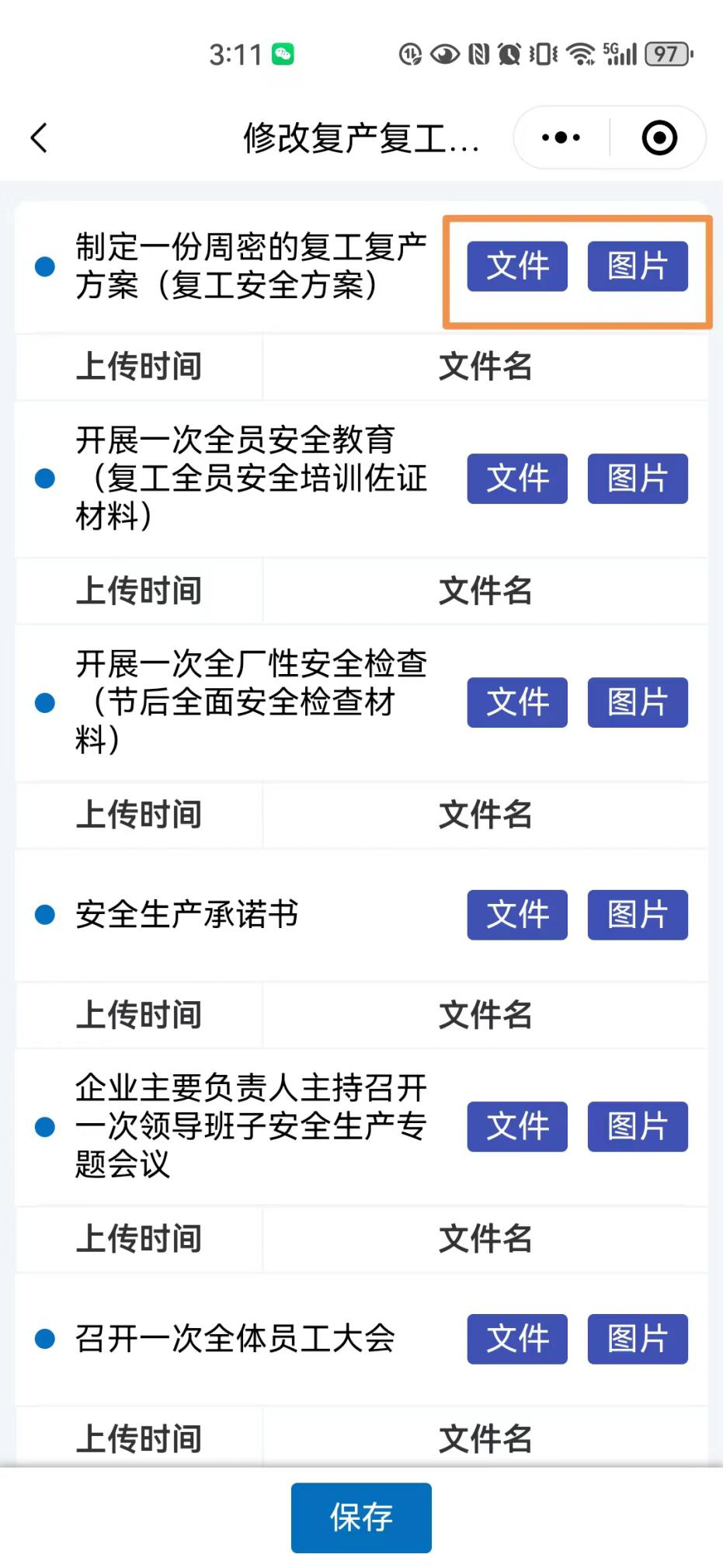 上传完成后点击页面最下方“保存”即完成复工复产“六个一”的资料报备。