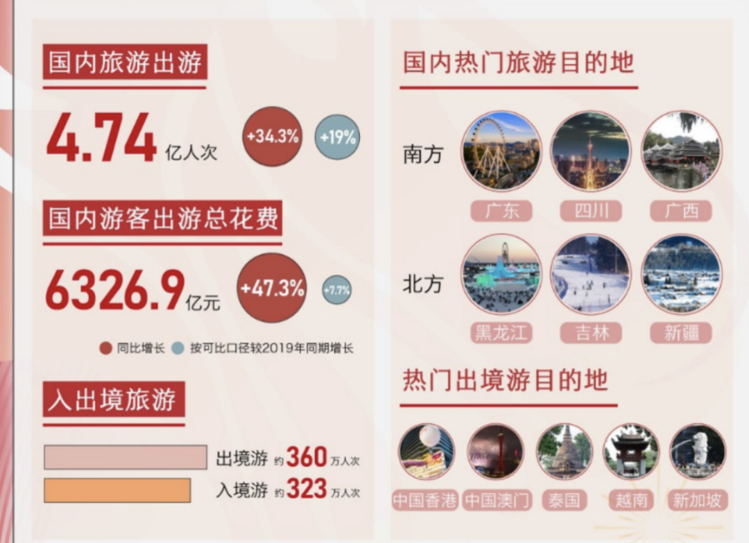 甲辰龙年的春节长假在全球旅游市场向好及消费者旅行需求增强的推动下,全国多地景区门票约满售罄,热门目的地的酒店甚至“一房难求”——酒店预订量大幅超过2019年同期,经文化和旅游部数据中心测算,国内游客出游花费总额6326.87亿元,同比增长47.3%;并恰逢情人节与春节假期重合,情侣标签的酒店订单量同比去年增长超过160%。长假8天,全国文旅消费市场迎来红火开年,为2024年的文旅消费开了好头。