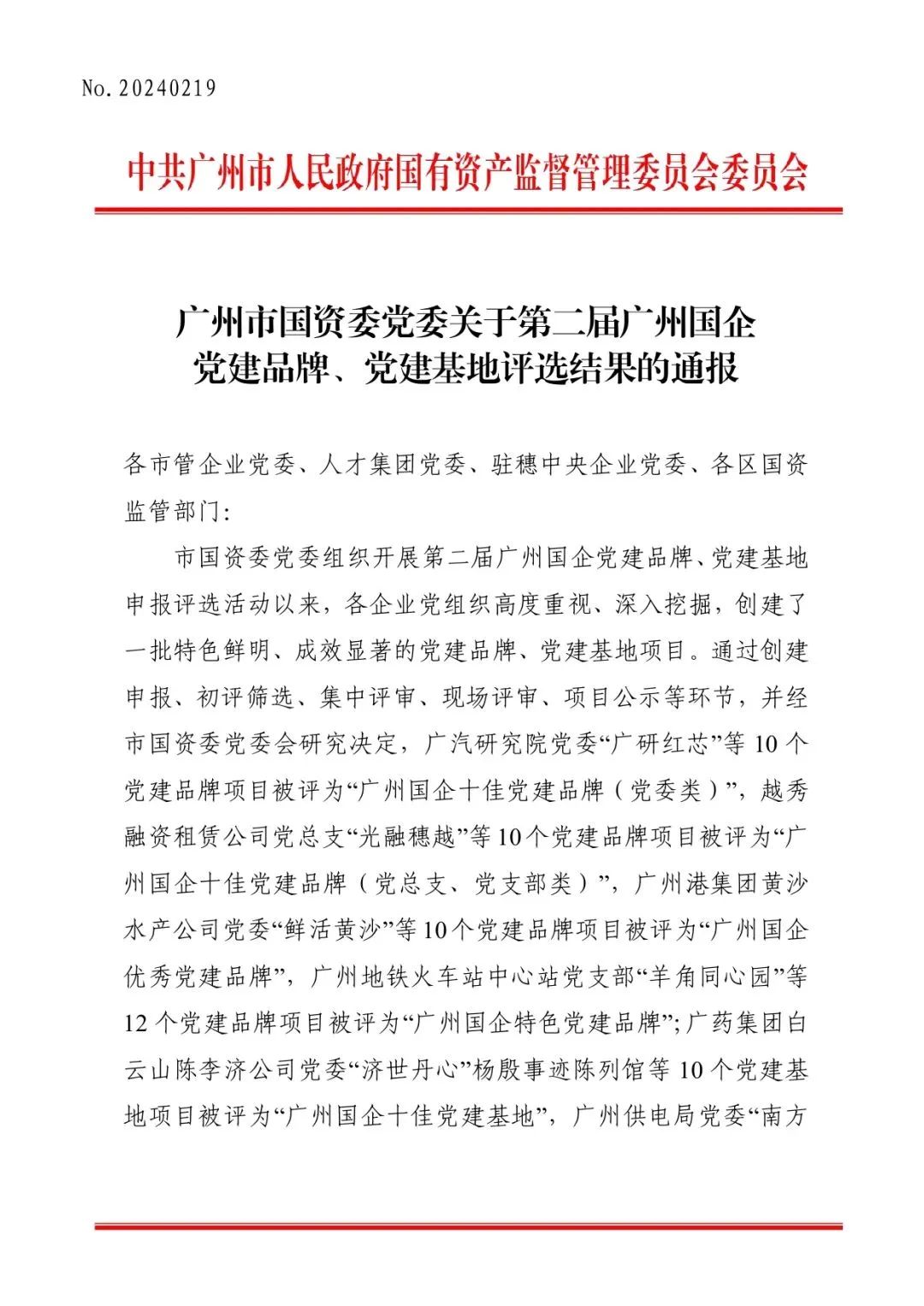 (一)广州国企十佳党建品牌(党委类)