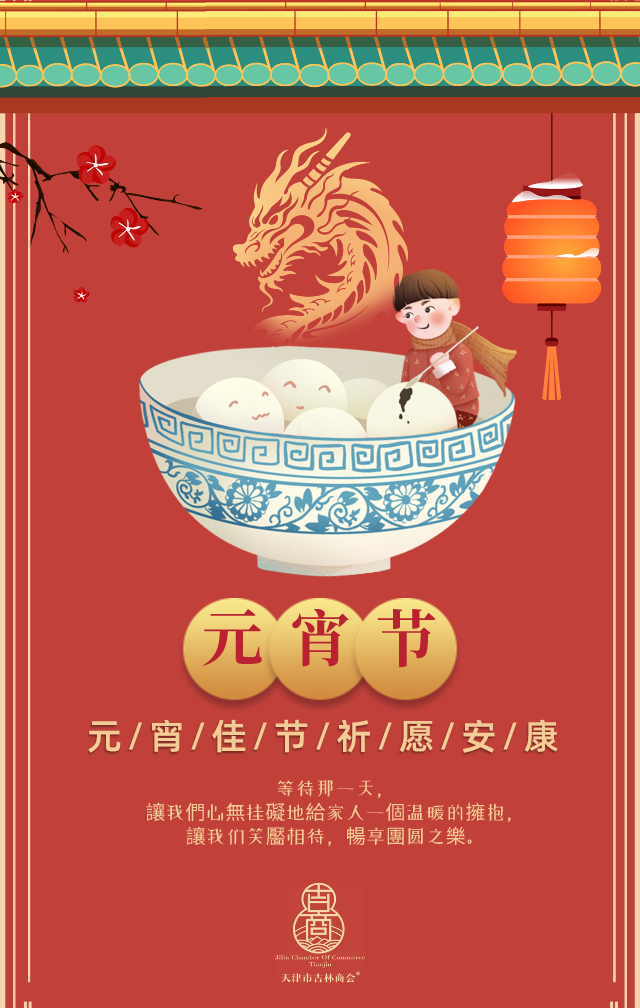 万家灯火元宵闹,一碗汤园瑞气盈。值此元宵佳节来临之际,天津市吉林商会领导班子及秘书处,向关心和支持商会发展的各位领导、商会全体会员、在外吉商、社会各界朋友们致以衷心的节日祝福和诚挚的感谢!向为商会发展做出积极贡献的吉商企业家们表示诚挚感谢和崇高敬意!