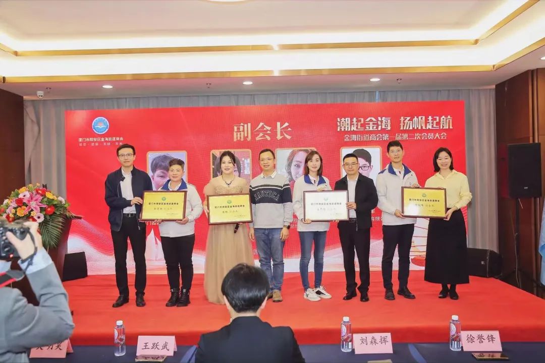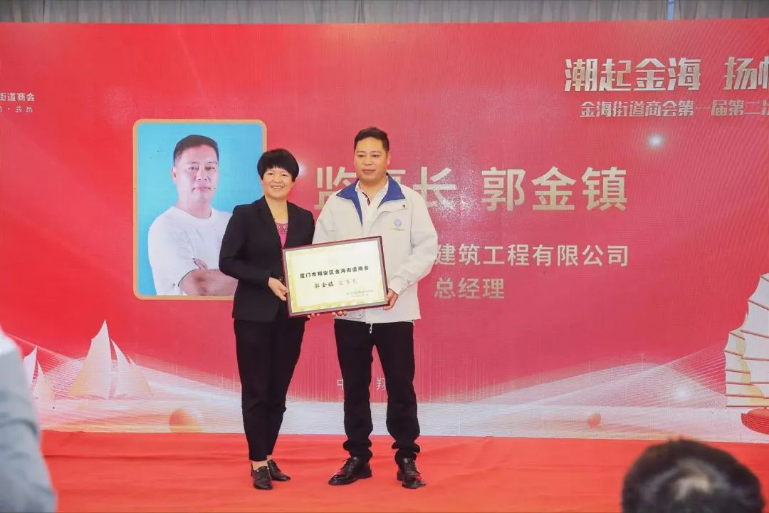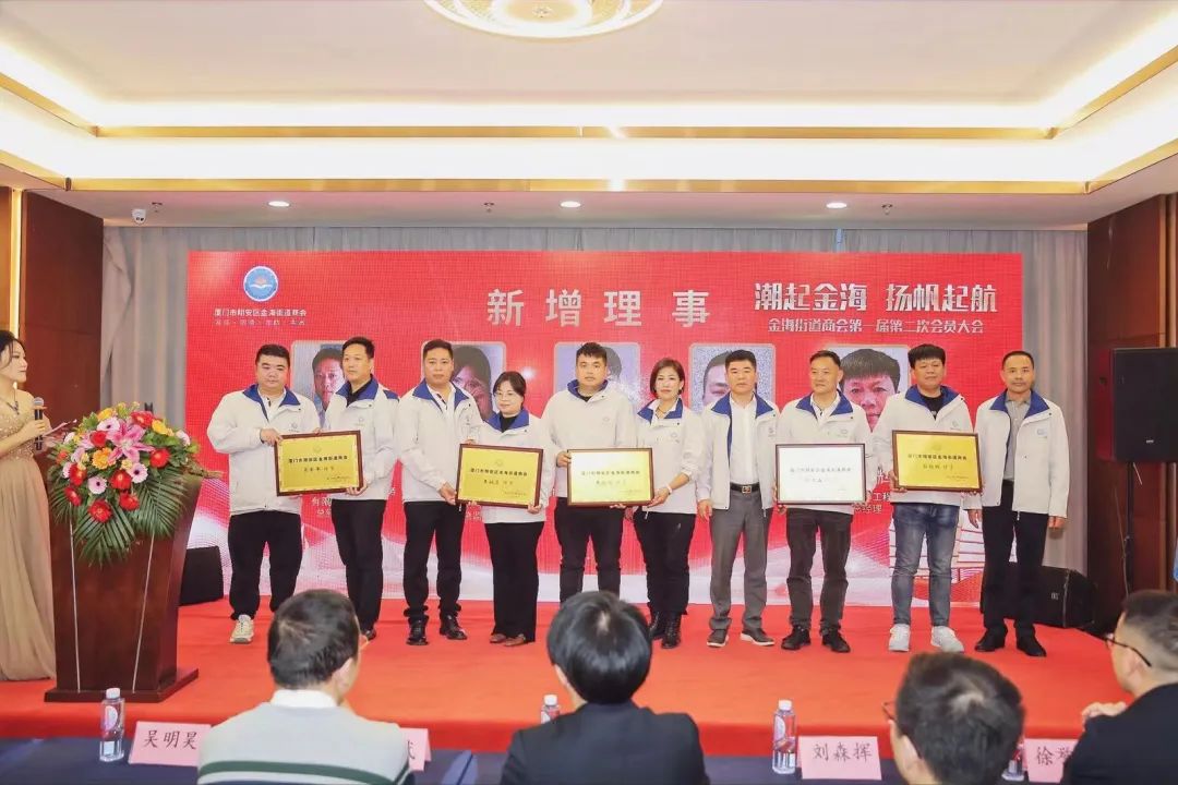 会上举行了金海街道商会纳新授牌仪式。为新任命的监事长郭金镇,副会长陈艳、郭清端、庄秀娟、许剑峰,副秘书长李思圆授牌。同时,为理事吴军平,王婉真,黄墩煌,郭水森,郭明辉、宋栋梁,黄宏权,李飞,洪永山,郭冰清,郭庚申授牌。