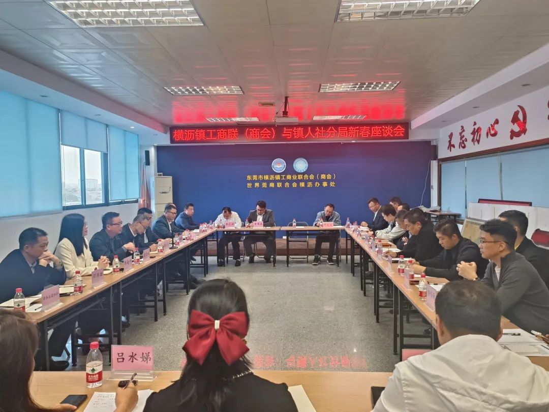 2月23日上午,横沥镇工商联(商会)与镇人社医保分局召开新春交流座谈会。横沥镇党委委员黄兆良,镇工商联(商会)主席丁浩权,镇人社医保分局局长谢仁杰,副局长陈美平、梁锐全、邓伟雄,镇工商联(商会)常务副主席朱启耀、副主席(常务副会长)邓满钦,镇统战办党支部委员吴亮斌,镇工商联(商会)副主席陈沛强、邓启俊、周富祥、程林及镇人社医保分局相关股室负责人,东莞市劳务派遣行业协会横沥分会、高训中心负责人,镇工商联(商会)会员企业代表等30多人参加座谈会。