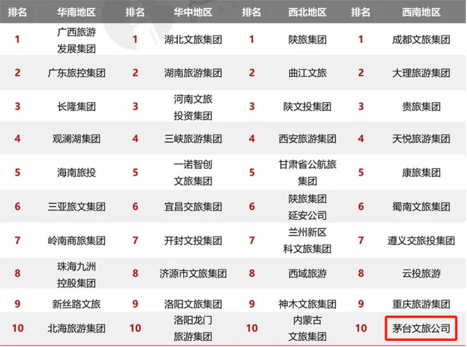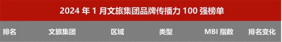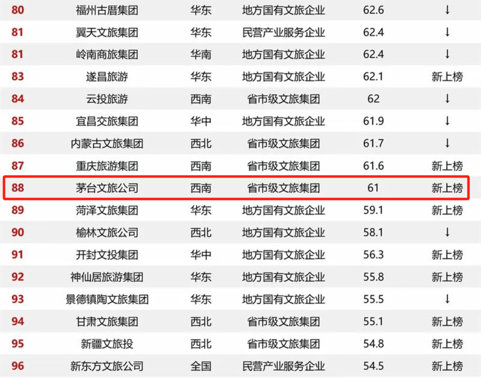 近日,迈点研究院发布2024年1月中国文旅集团发展报告,茅台文旅公司入选文旅集团品牌传播力百强榜单,位列88名。在文旅集团类型细分榜单中,茅台文旅公司进入西南区域细分榜单的前十名。