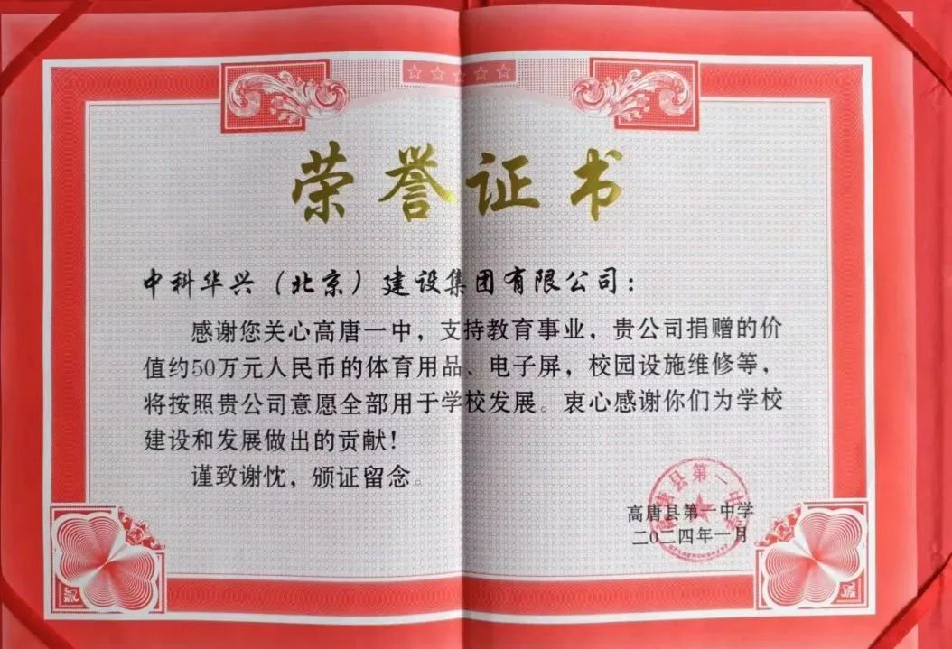 学校党委书记刘双双对中科华兴建设集团有限公司热心公益的慷慨捐赠,对县委、县政府给予学校基础设施改造升级的鼎力支持表示感谢,并介绍了学校特色发展等情况。刘书记表示,我校在县委、县政府的坚强领导下,在社会各界的大力支持下,在全体师生不懈努力下,进一步提升办学品质,不辜负各级领导和社会各界对我校的大力支持和厚望。