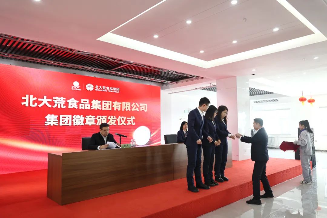 各分子公司负责人现场为100余名员工颁发徽章,大家统一着装、抖擞精神,以专业的职业形象和铿锵有力的口号展现团队风采,为食品集团新时期发展再度凝心聚力、鼓劲冲刺。