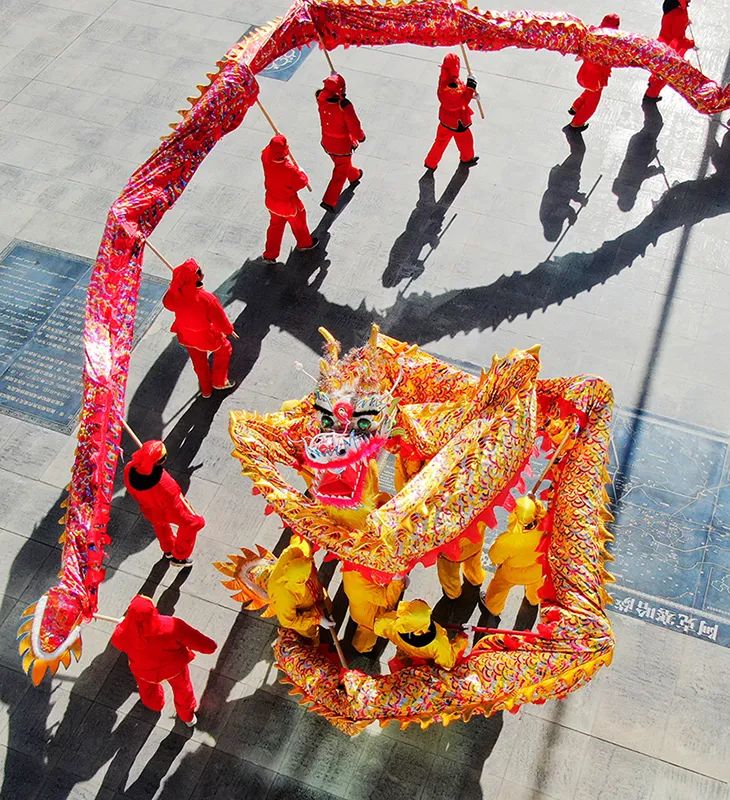 耍龙灯也称舞龙灯或龙舞。它的起源可以追溯上古时代。传说,早在黄帝时期,在一种《清角》的大型歌舞中,就出现过由人扮演的龙头鸟身的形象,其后又编排了六条蛟龙互相穿插的舞蹈场面。见于文字记载的龙舞,是汉代张衡的《西京赋》,作者在百戏的铺叙中对龙舞作了生动的描绘。中华民族崇尚龙,把龙作为吉祥的象征。