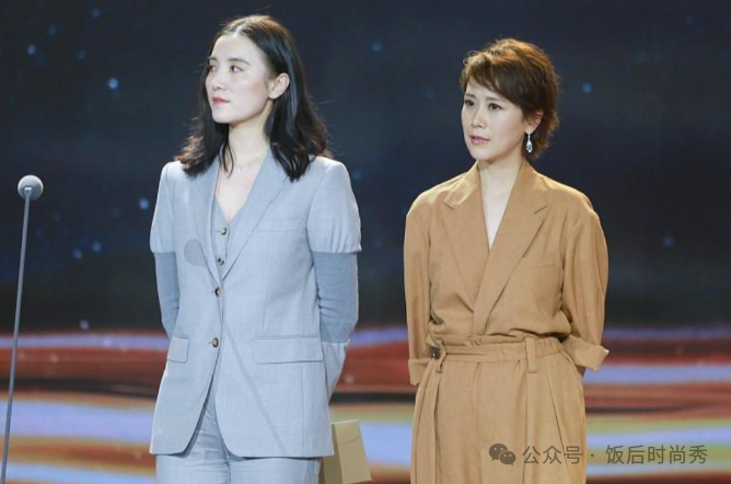 事实上,宋佳和海清的穿搭风格都散发着一种独特的魅力。宋佳身穿清新淡雅的蓝色西装外套,展现出了成熟稳重的气质。而海清则选择了灰色西装外套搭配黑色长裤,展现了她的知性优雅。这两种风格各具特色,但都透露出女性在商务场合中的自信和魅力。