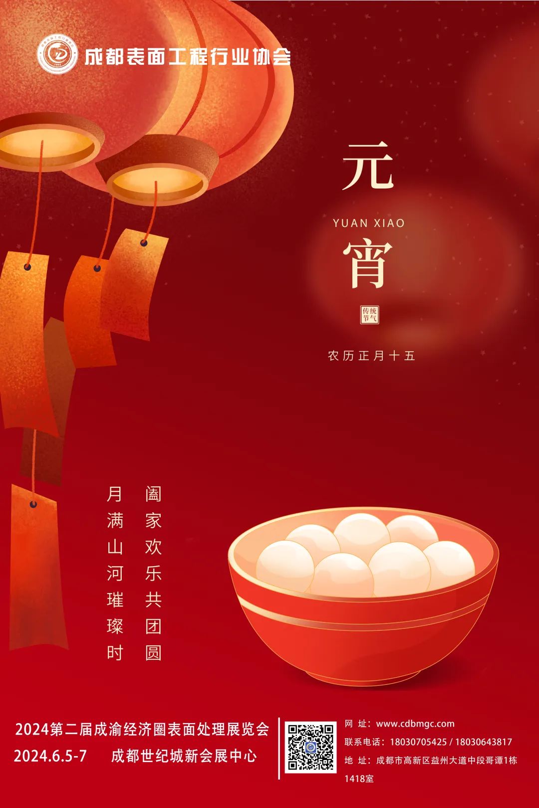成都表面工程行业协会恭祝各界人士、行业企业与会员单位元宵节快乐!