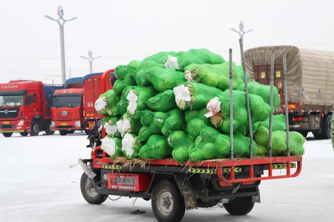 2月22日一大早,小编来到蔬菜一区,各类蔬菜一应俱全。即便天空下起豆大的雪粒子,市场内依然人流如织,货车、短驳车来回穿梭。