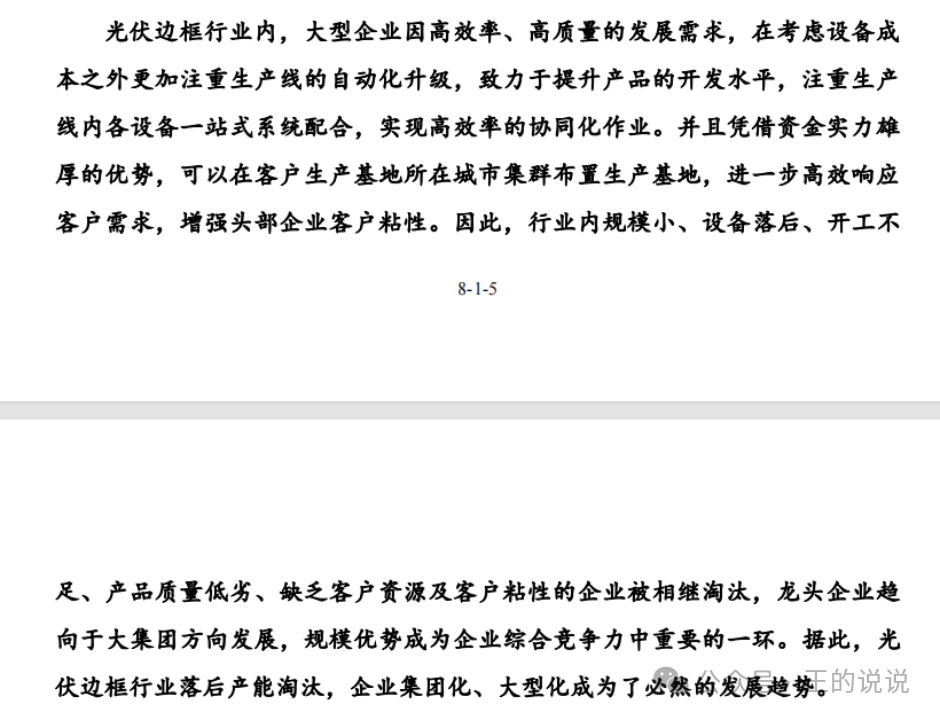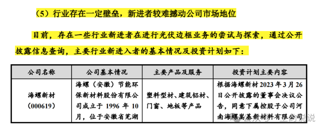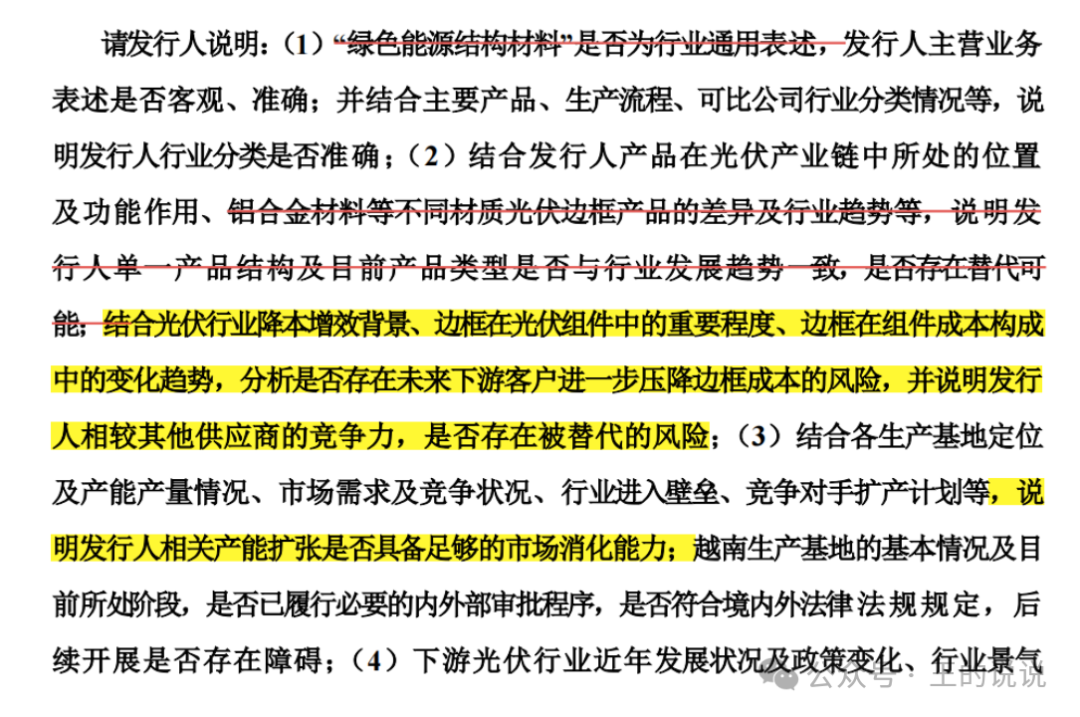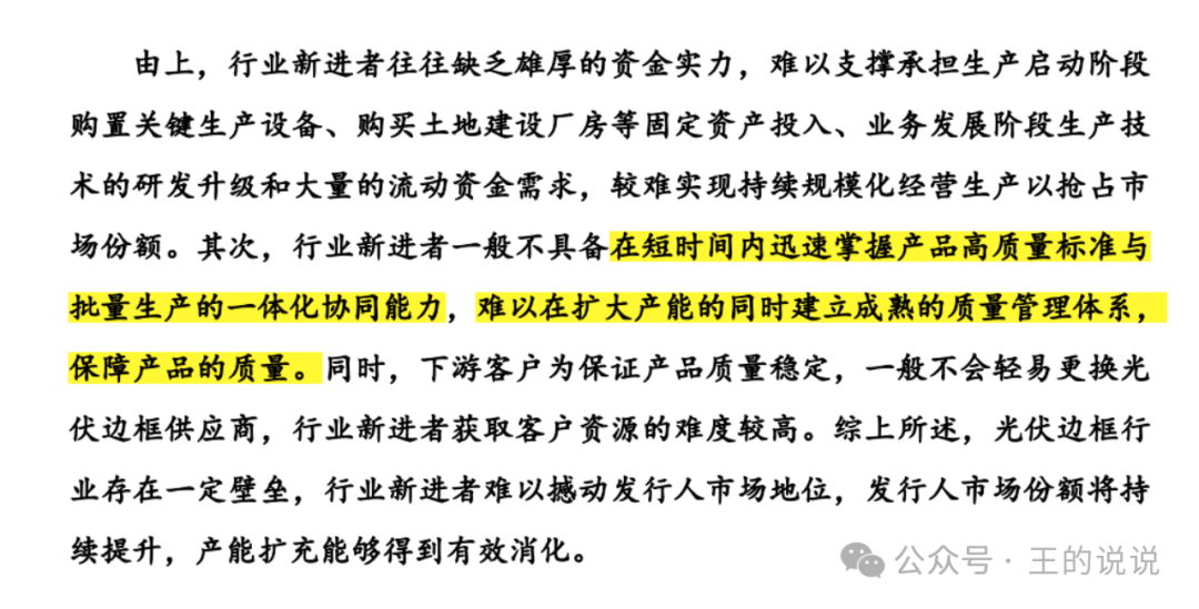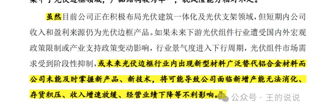 关于行业及市场地位-你只生产这一种铝合金光伏边框产品,在整个大产品中成本占比9%,还有其他材质也能做光伏边框产品。。