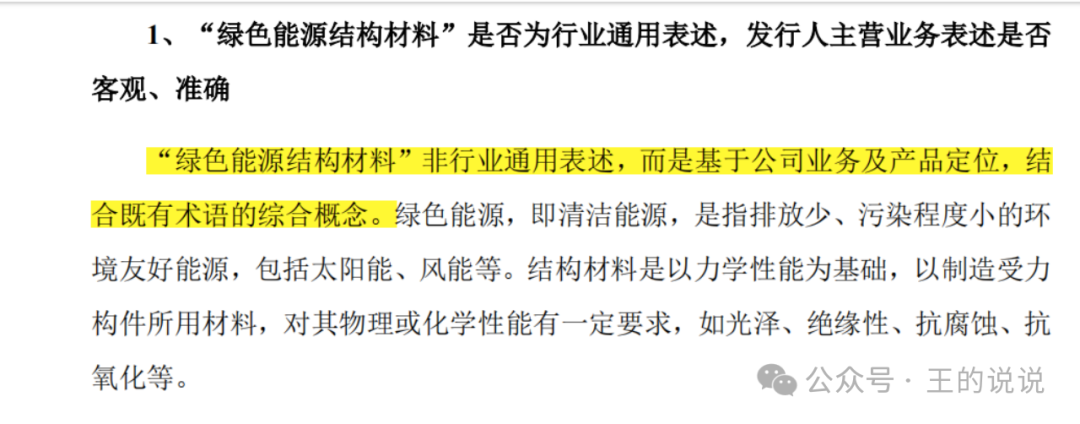 “绿色能源结构材料”非行业通用表述,而是基于公司业务及产品定位,结