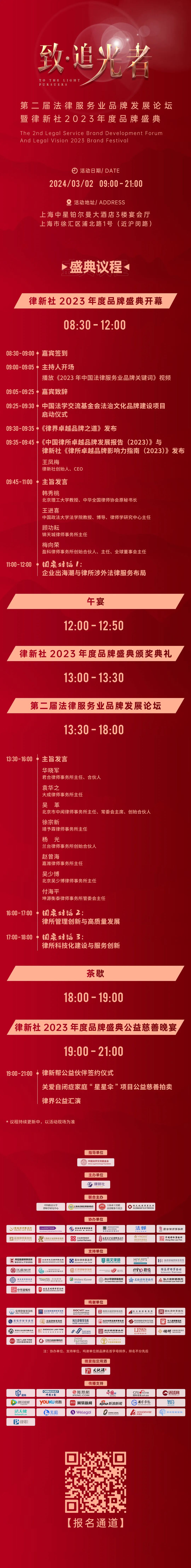 3月2日,期待与您齐聚“致·追光者”第二届法律服务业品牌发展论坛暨律新社2023年度品牌盛典,共襄盛举,一起成为“追光者”!