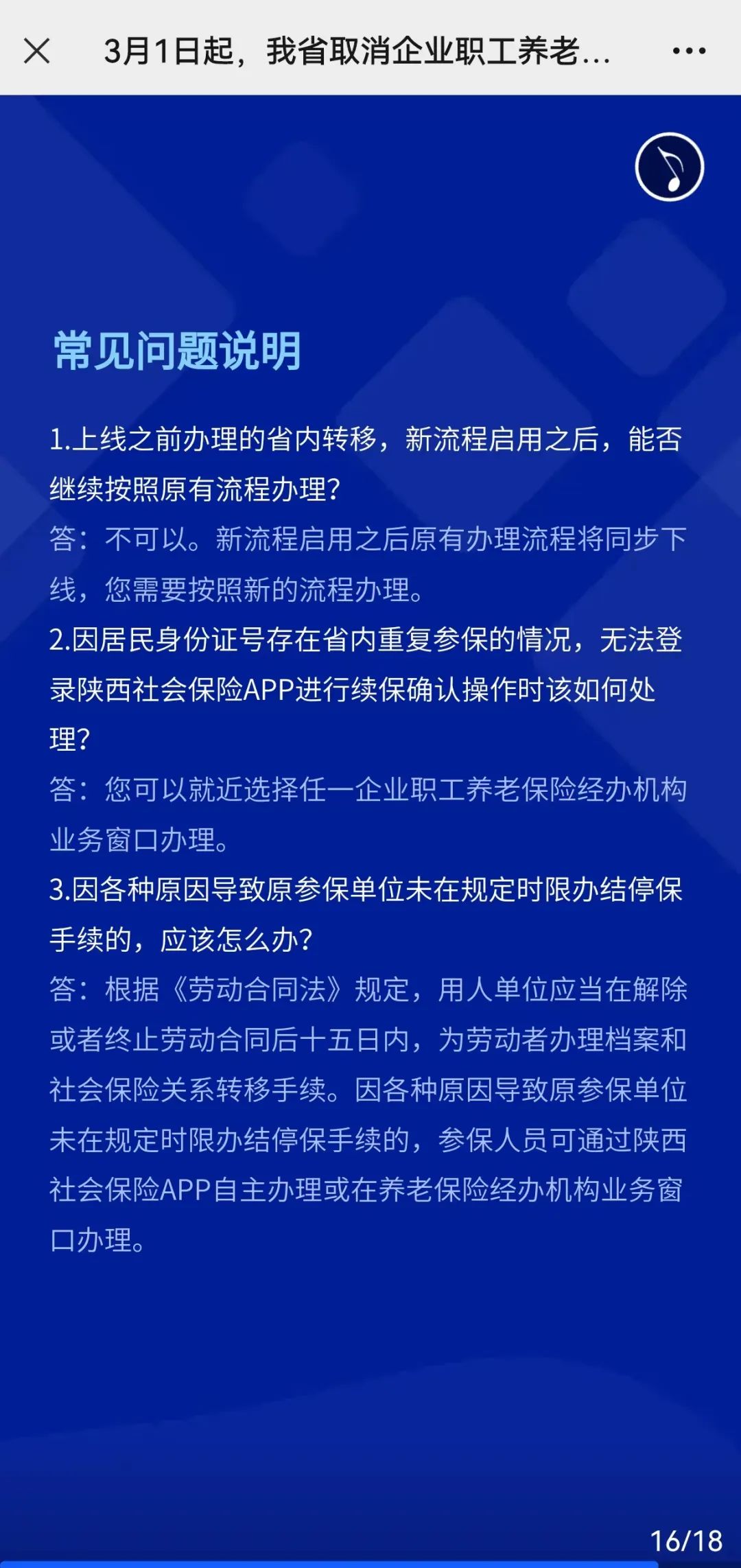 【实用收藏H5】3月1日起,陕西省取消企业职工养老保险关系转账,点击进入看操作>>