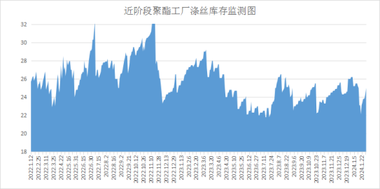 库存方面,根据绸都网统计数据来看,现如今聚酯市场整体库存集中在15-26天;具体产品方面,其中POY库存至15-26天,FDY库存至14-26天附近,而DTY库存则至14-26天左右。
